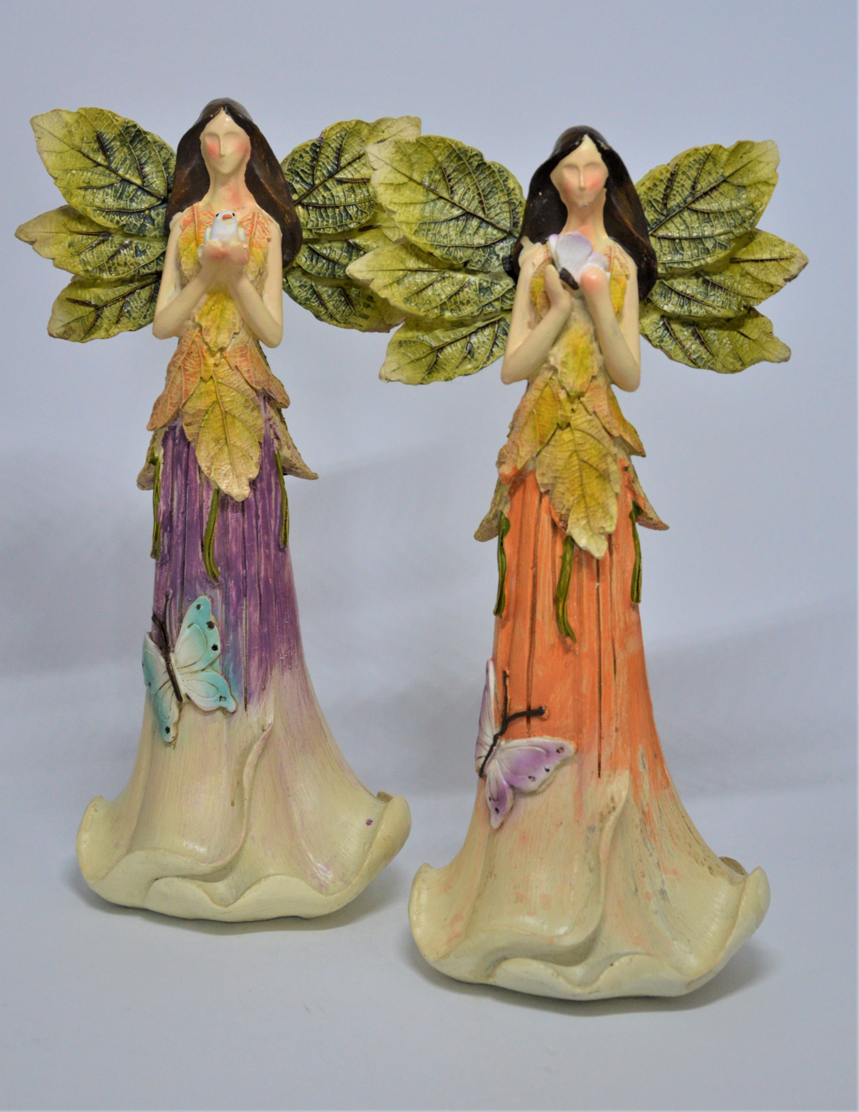 Anděl s křídly ve tvaru listů - krásný vícebarevný anděl/víla v netradičním provedení se stane dekorací, která originálně zpestří a rozsvítí váš interiér. Místo křídel má jemné listy, které zdobí i její horní část těla, dlouhá sukně je pak vyšperkovaná jemným motýlem.