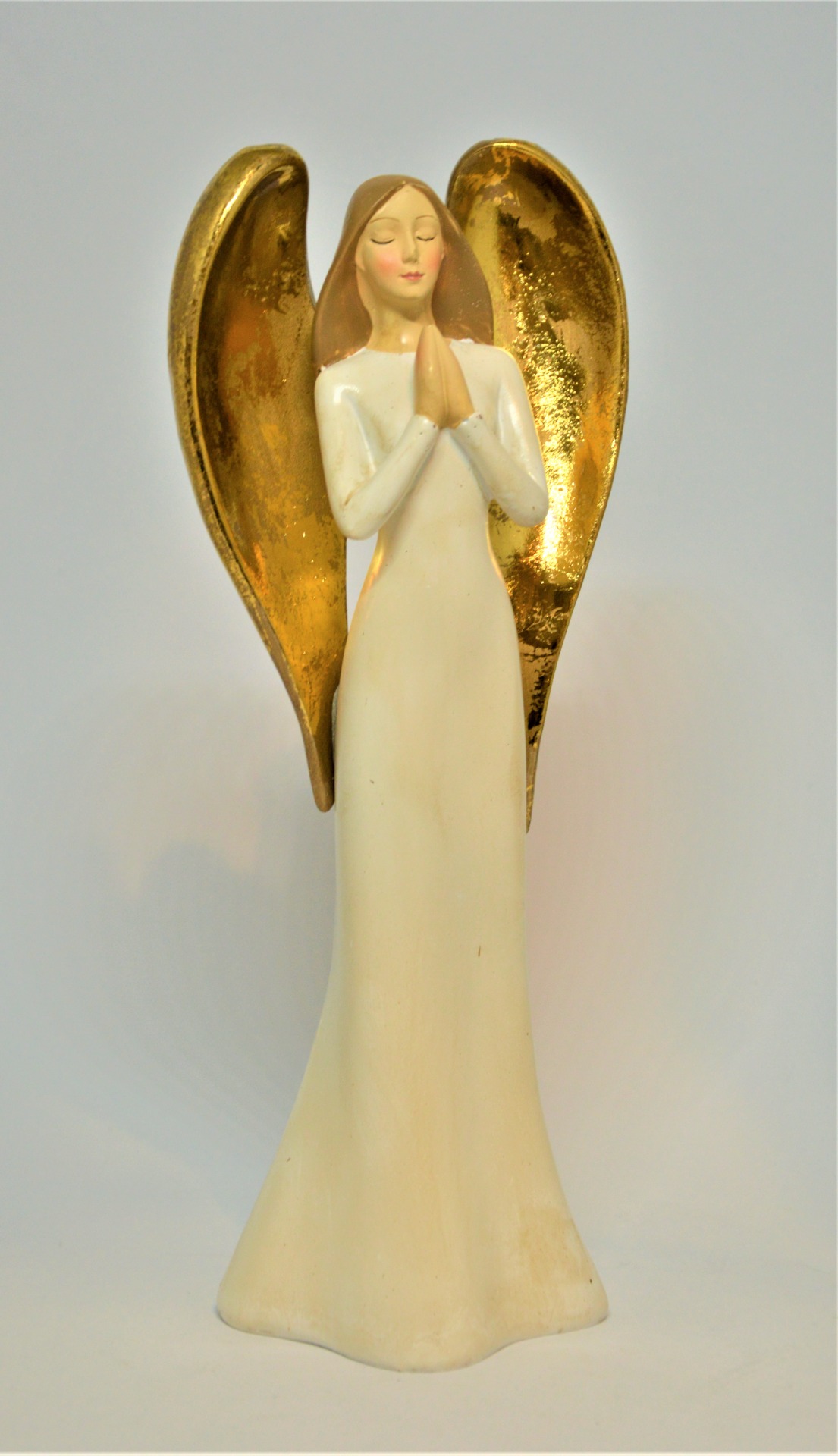 Andělíček se zlatými křídly - bílý andělíček se sepjatýma rukama, se zlatými křídly. Díky své bílo-zlaté kombinaci se bude hodit do každého interiéru.