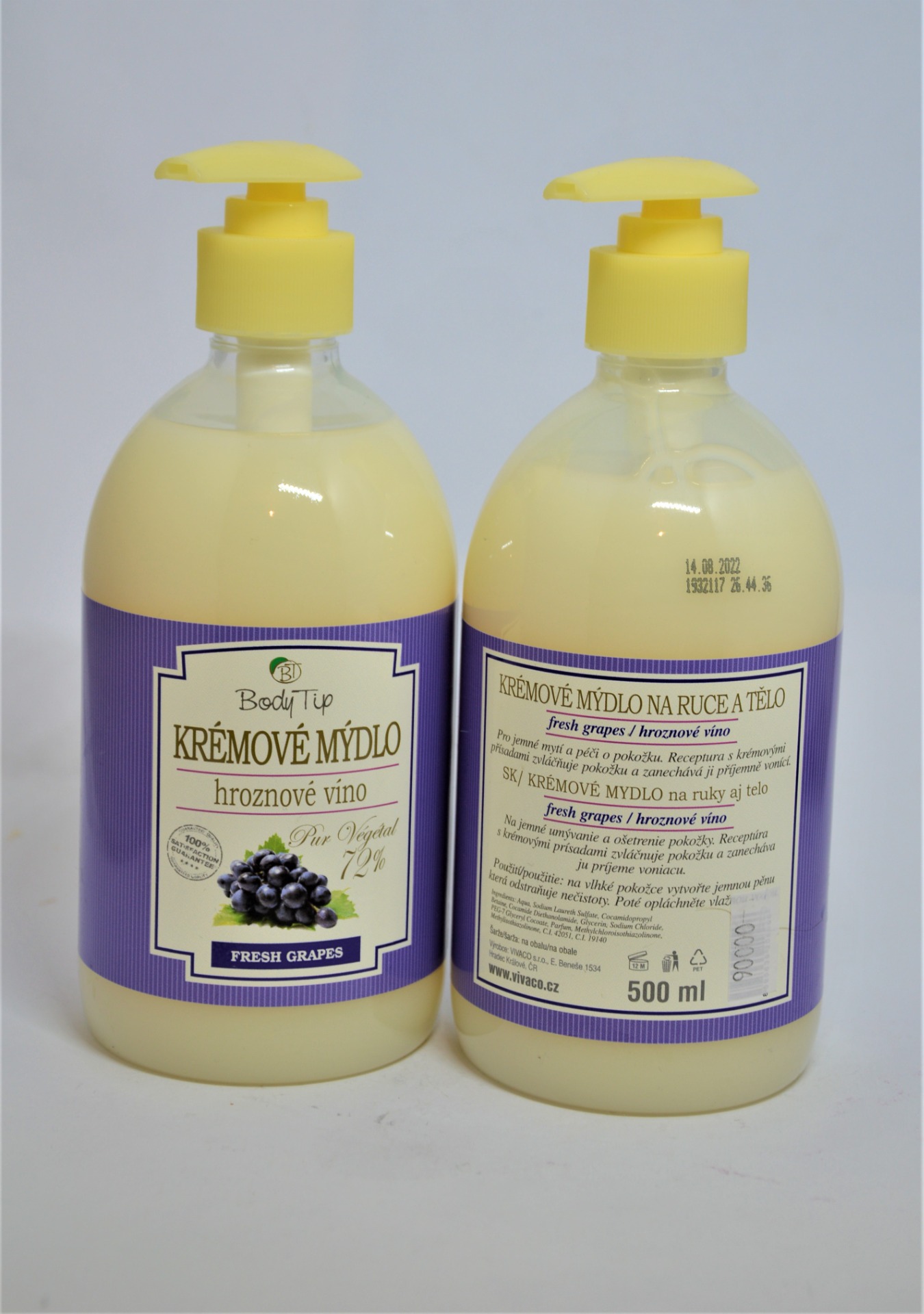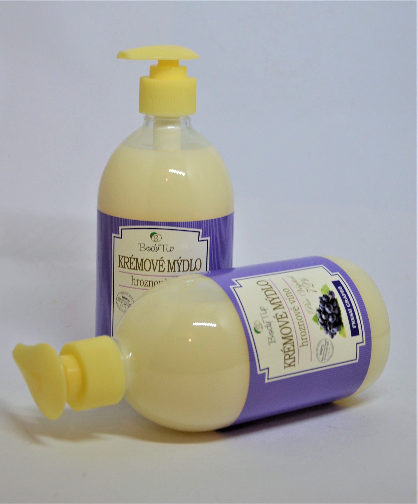 Krémové mýdlo na ruce a tělo pro jemné mytí a péči o pokožku. Receptura s Panthenolem a mandlovým olejem zvláčňuje pokožku a zanechává ji hedvábně jemnou a čistou. Příjemná vůně hroznového vína dokonale osvěží vaše tělo i mysl.