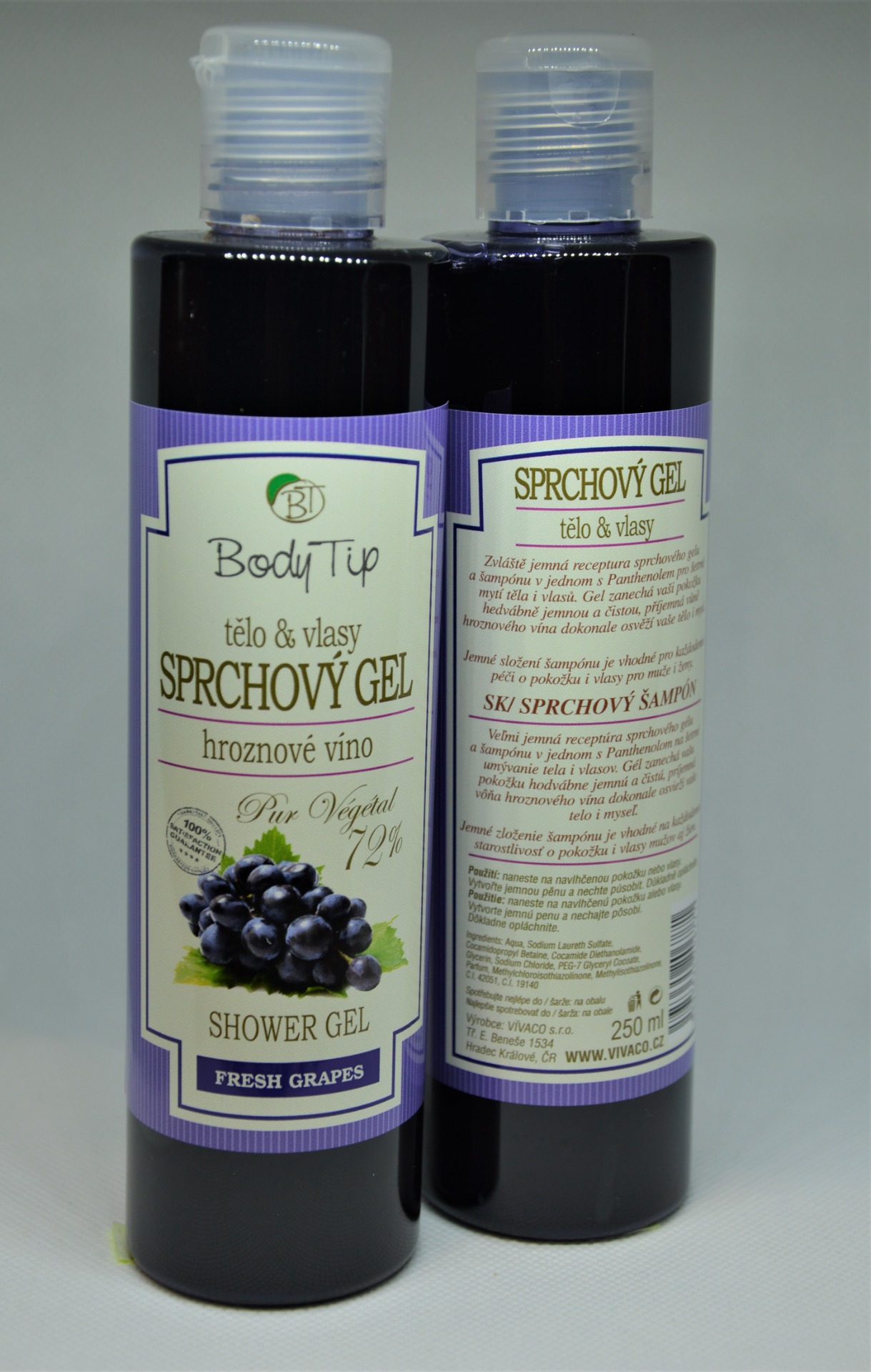 Sprchový gel a šampón v jednom je určený pro šetrné mytí těla i vlasů. Pochlubit se může zvláště jemnou recepturou s Panthenolem, která zajistí šetrné mytí těla i vlasů. Gel zanechává vaši pokožku hedvábně jemnou a čistou, příjemná vůně hroznového vína dokonale osvěží vaše tělo i mysl.