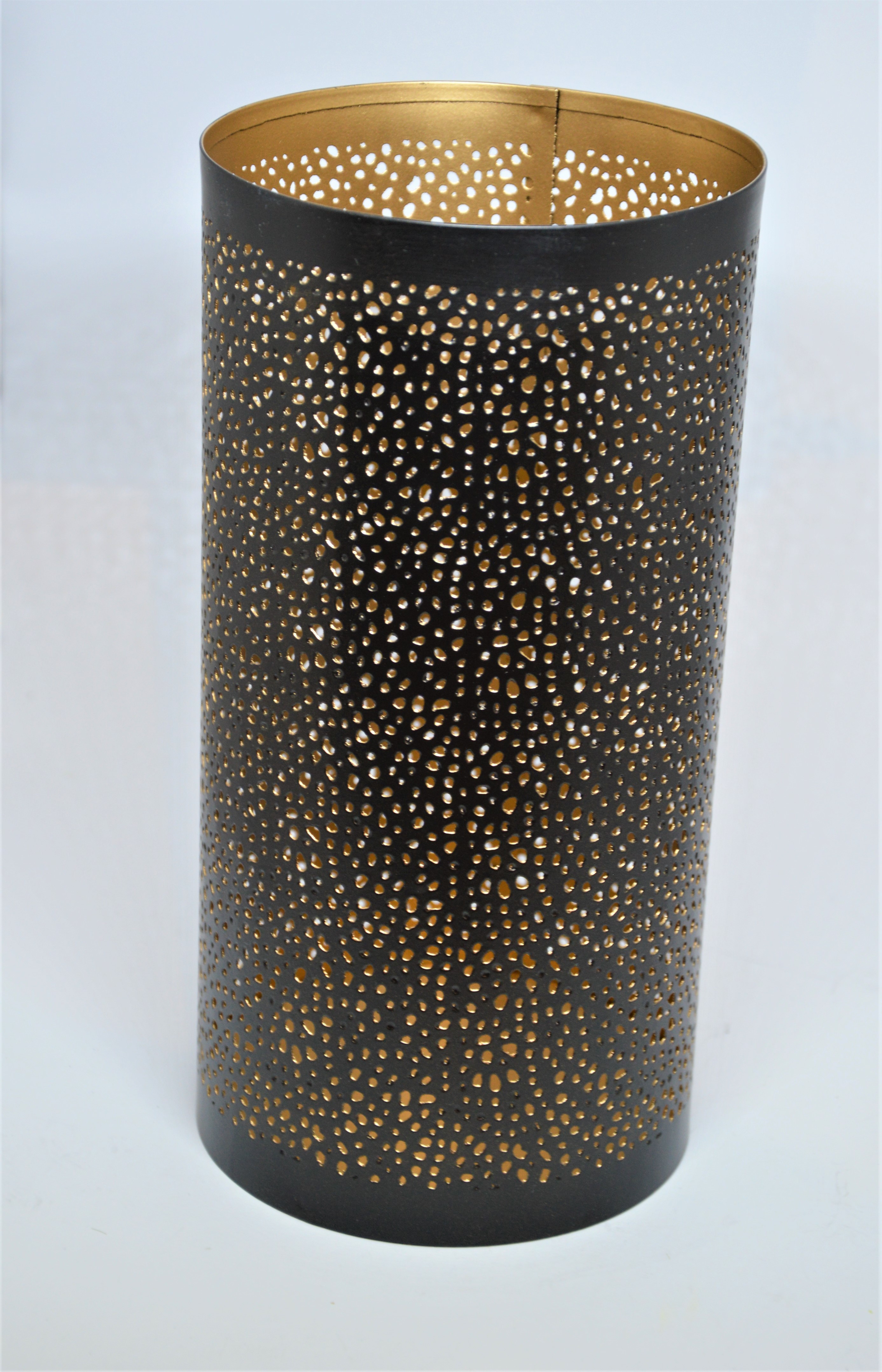 Černý děrovaný svícen velký - v elegantním provedení se skvěle hodí hlavně do moderních interiérů.