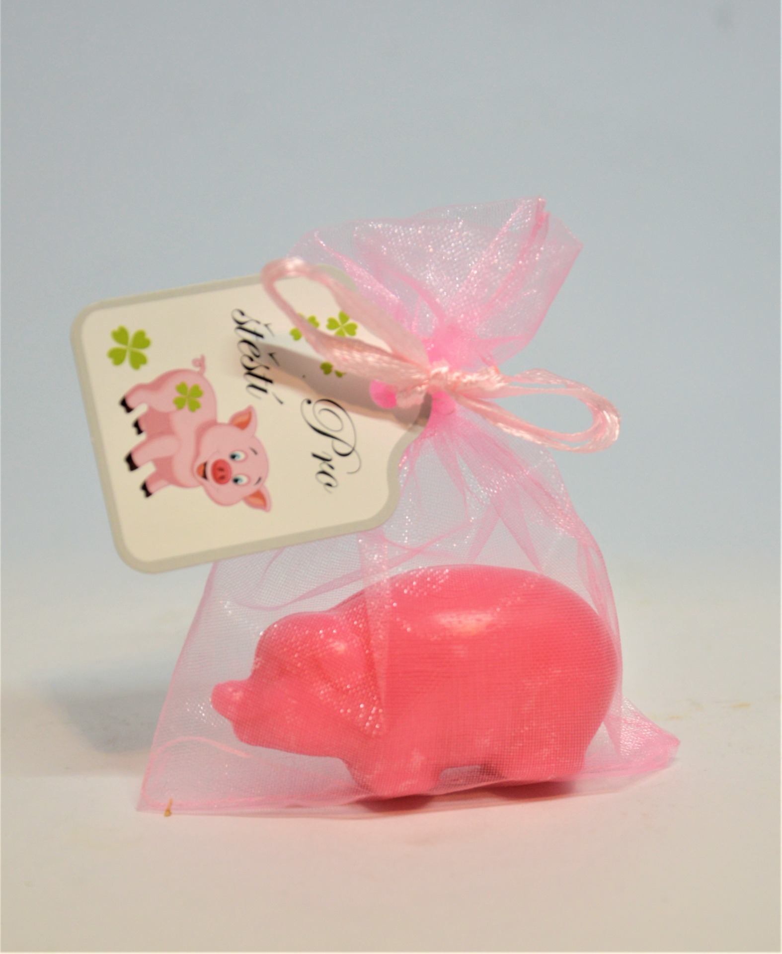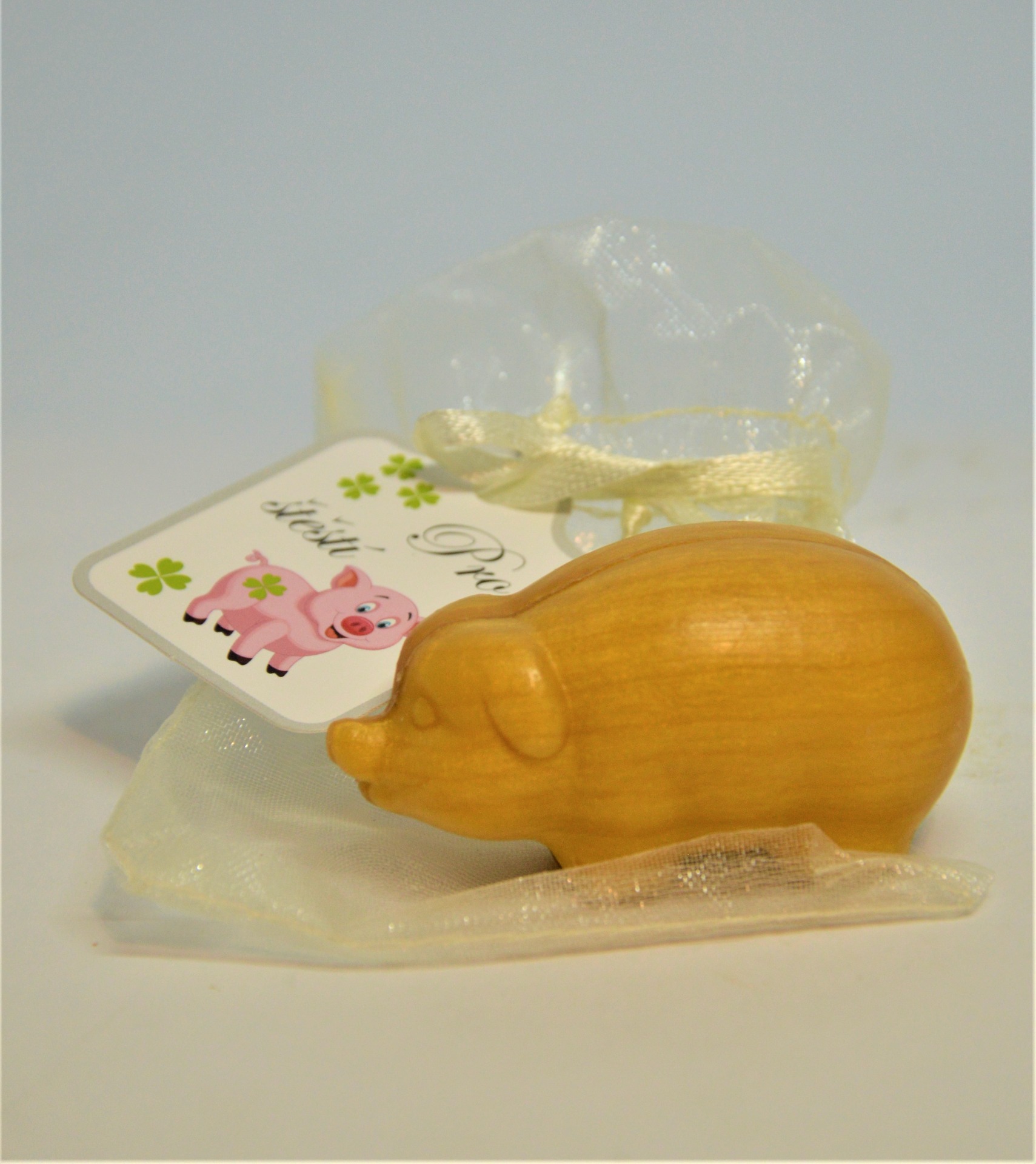 České luxusní glycerinové mýdlo Prasátko pro štěstí - ručně odlévané. Zanechává pokožku jemnou a vláčnou.