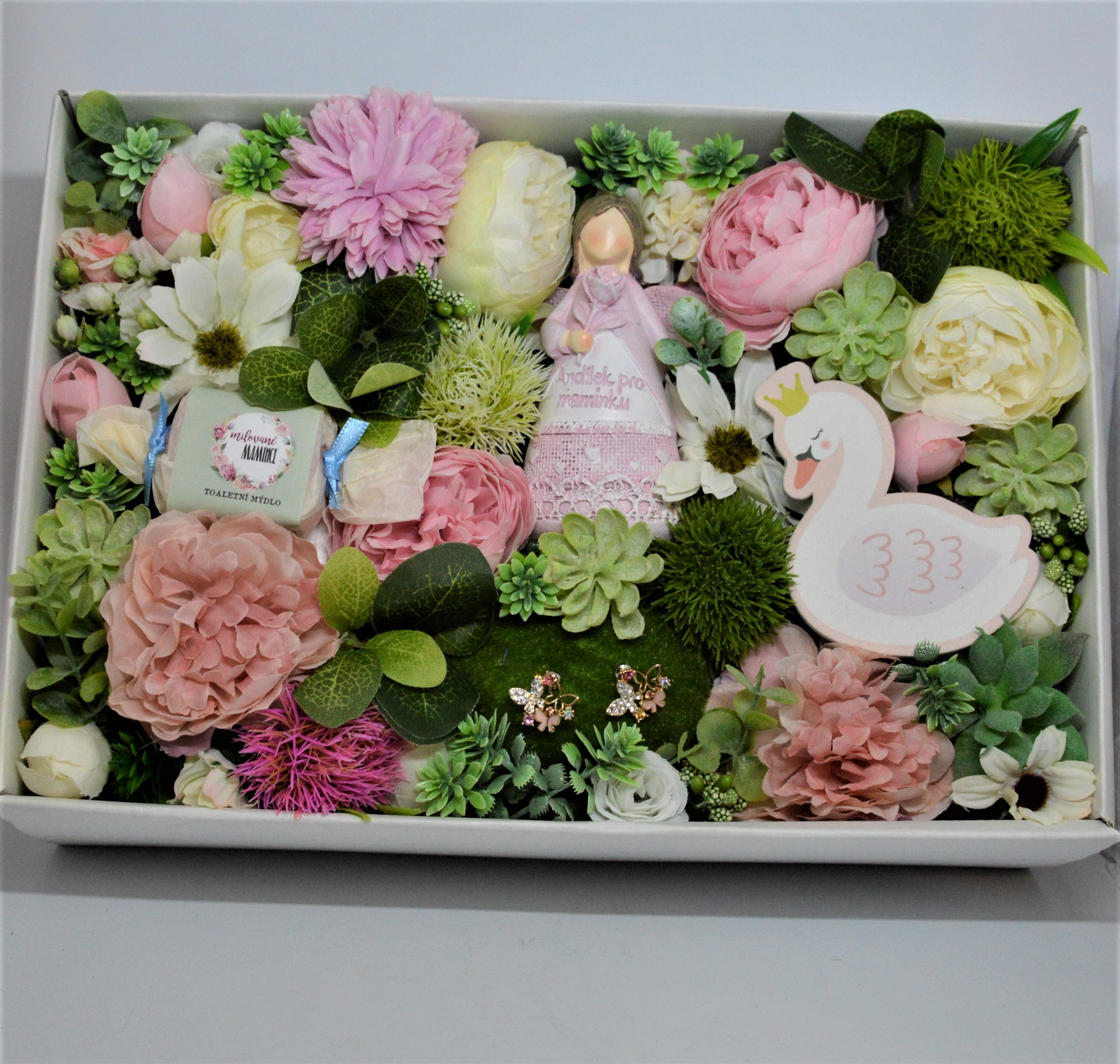 Dárková krabička Mamince - maminky si za jejich pozornost, péči a laskavé srdce zaslouží dárky nejen ke Dni matek. Udělejte jim radost kdykoli. Třeba s touto dárkovou krabičkou. Laděna je do jemných růžovo-bílých barev, které doplňuje svěží zeleň.