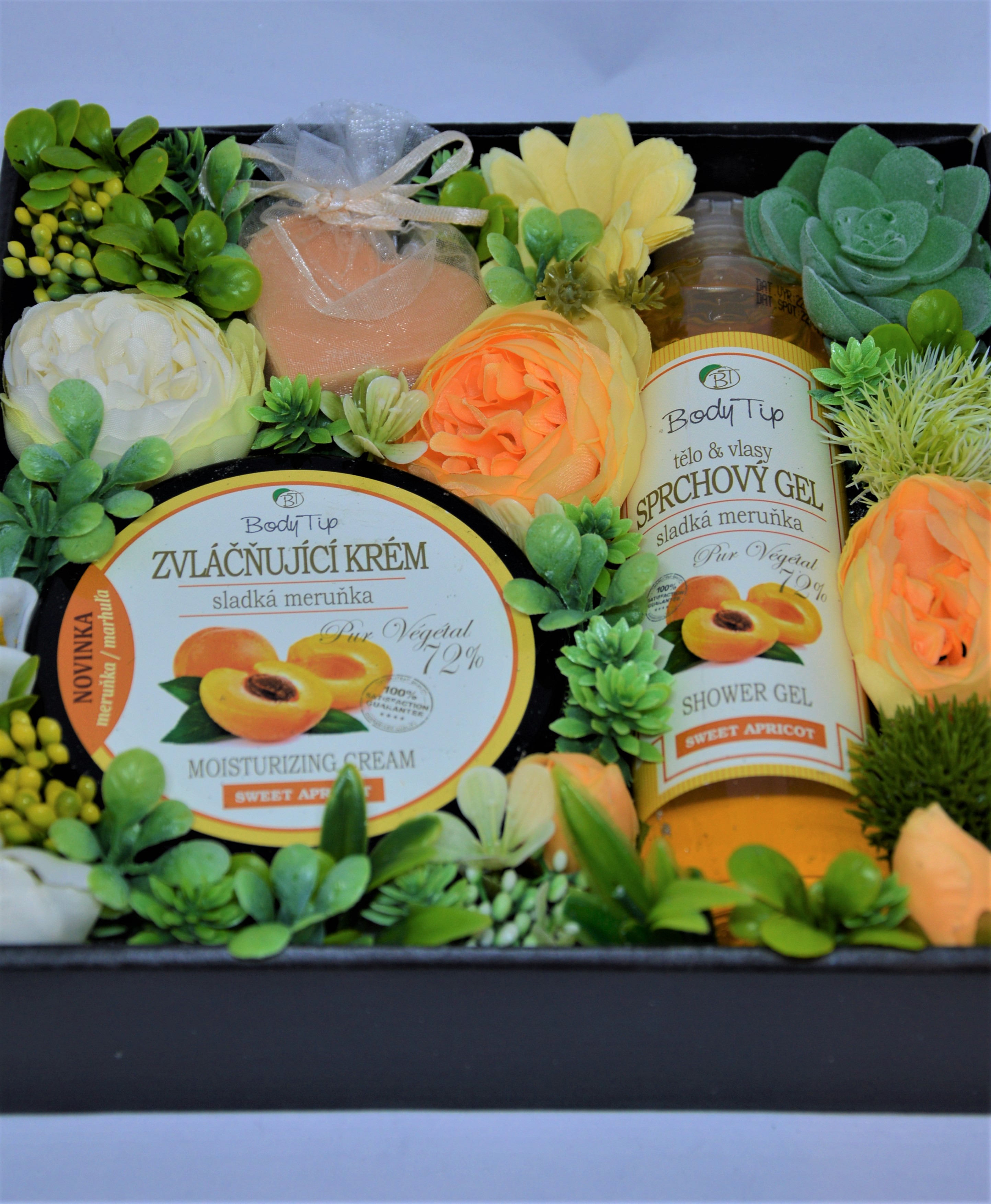 Dárková krabička Pro milovníky meruněk - meruňková krabička nesmí v naší nabídce chybět. Náš kraj je totiž pěstováním sladkých oranžových plodů proslulý. Pokud jste jejich sladké vůni podlehli i vy, pak bude tato krabička správnou volbou. Meruňková kosmetika vám připomene horké slunce, oživí vzpomínky na léto a zlepší vám náladu.