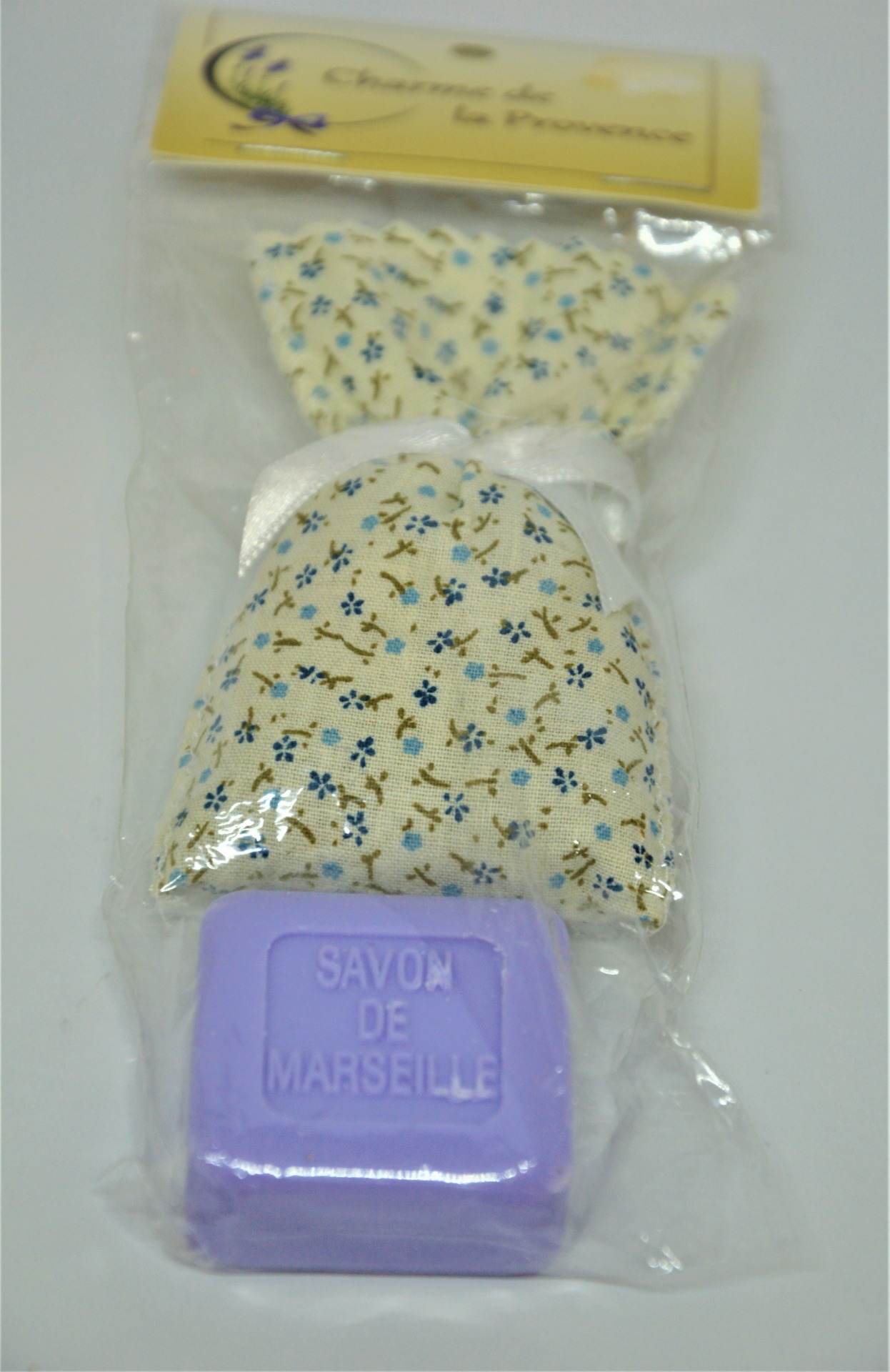 Dárkový set - francouzské luxusní přírodní mydélko a pytlíček plněný levandulovým květem - pytlíček se sušeným květem levandule najde využití k provonění skříní a zásuvek, kde odpudí všechny moly.