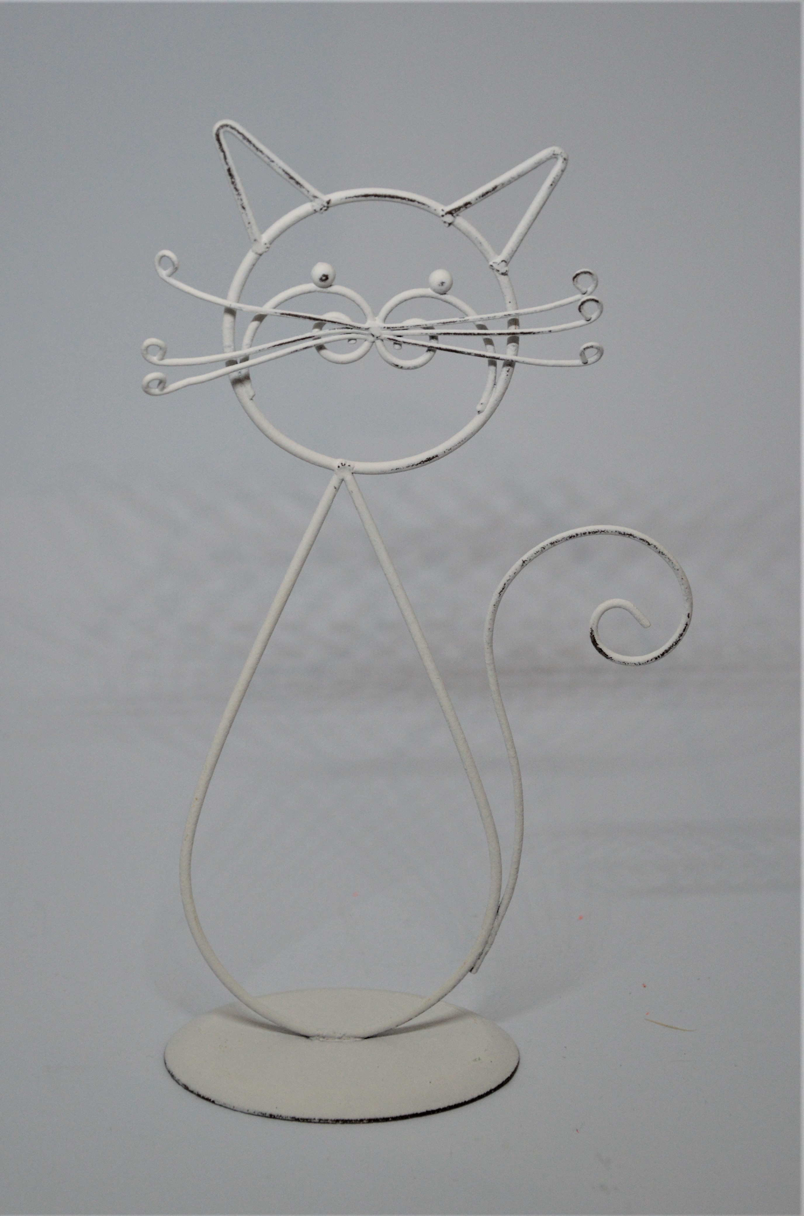 Drátěná kočka - bílá drátěná kočka na podstavci do puntíku naplňuje heslo, že v jednoduchosti je krása.