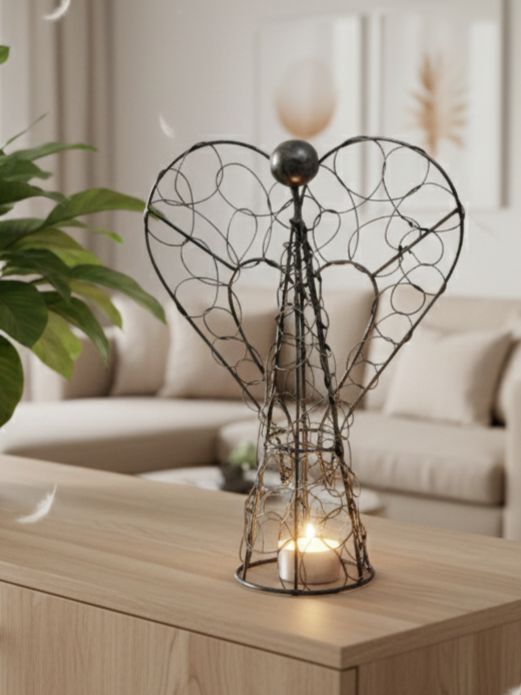 Drátěný anděl - křídla ve tvaru srdce, potěší tak jako dárek z lásky nebo k vyjádření sympatií.