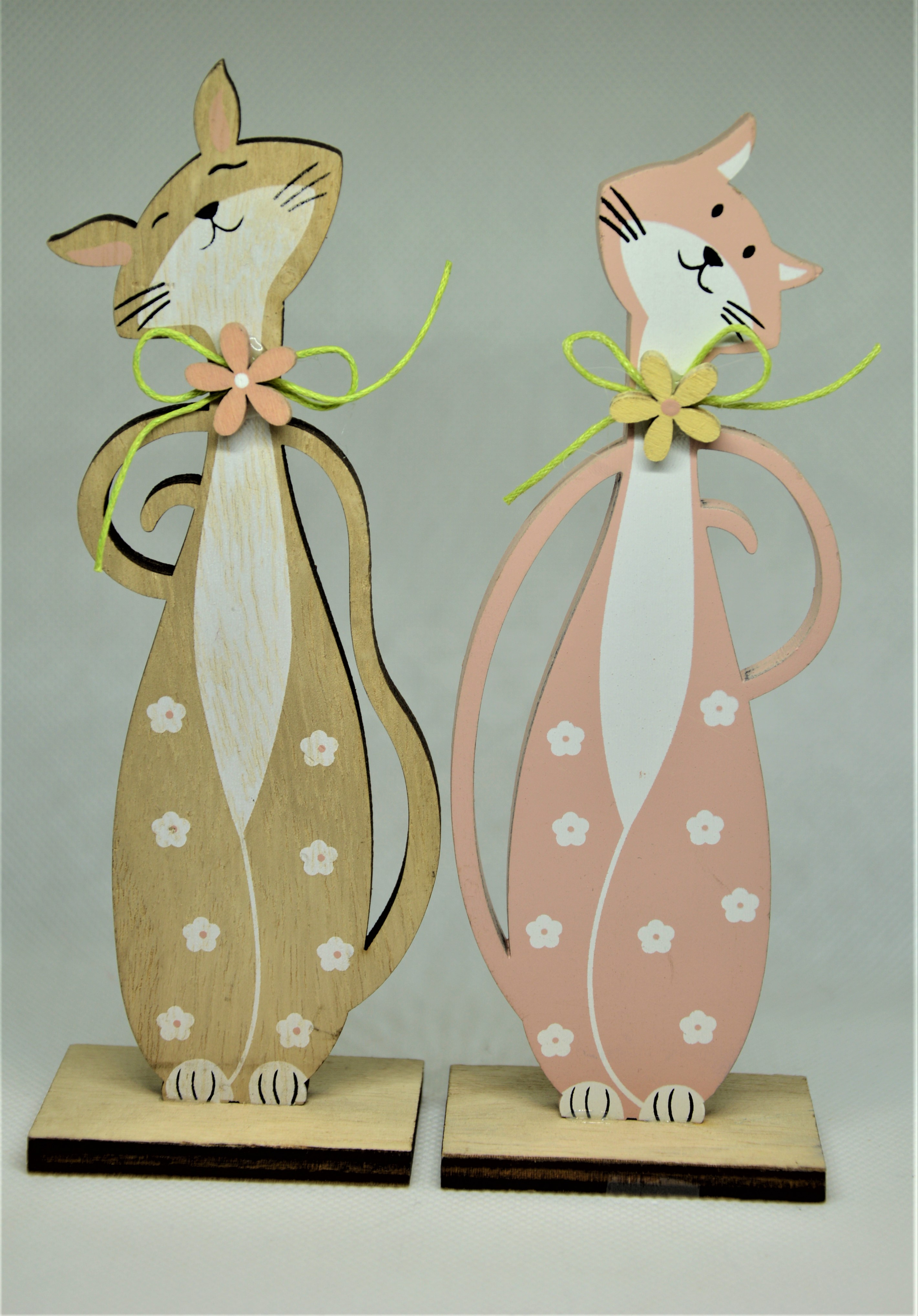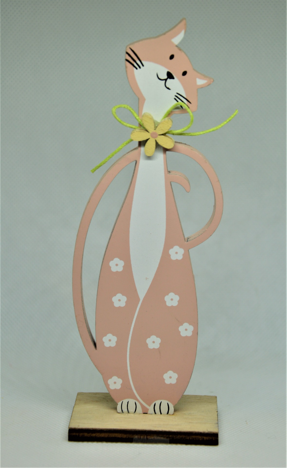 Dřevěná dekorace kočka - z překližky, na podstavci. Růžová barva.