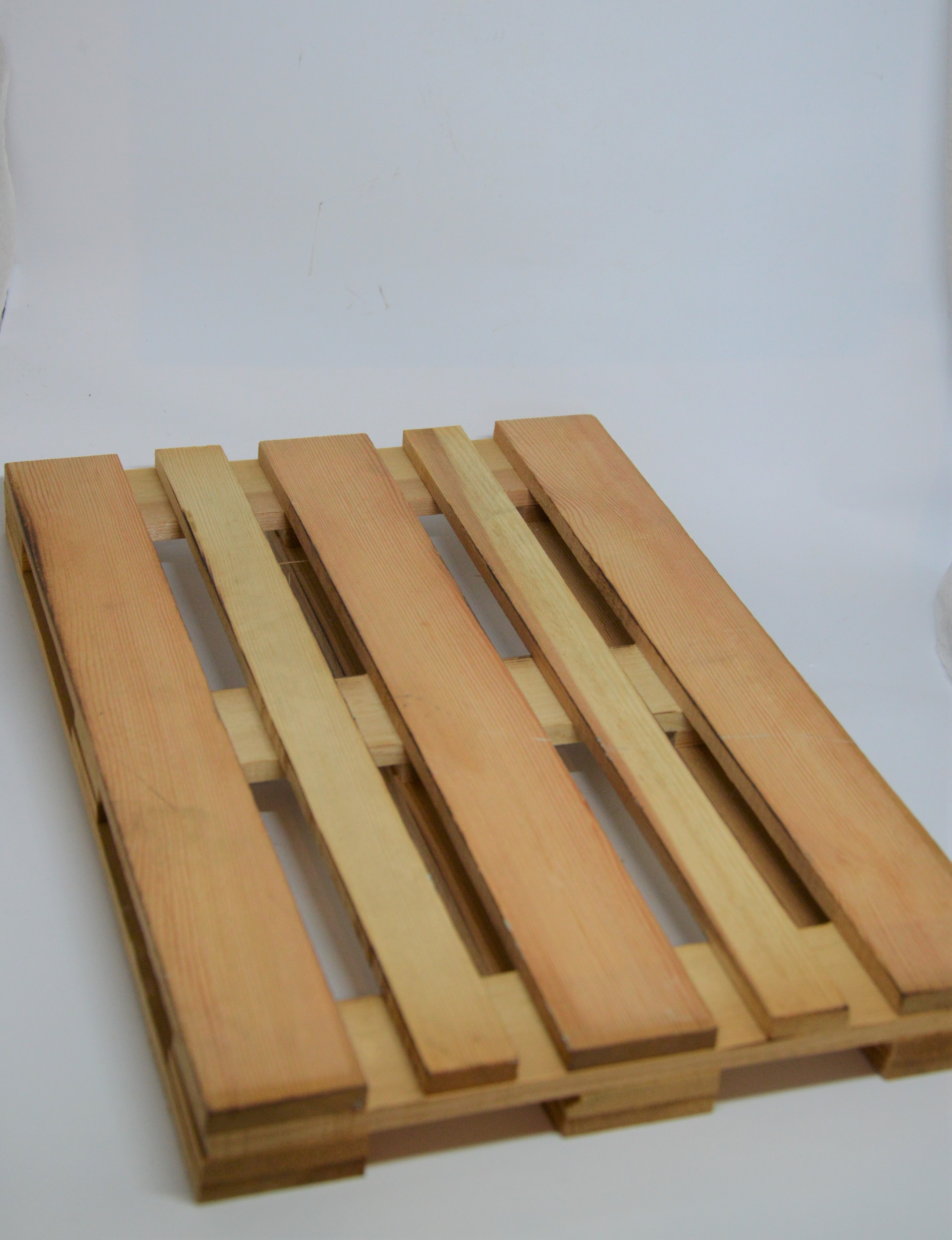 Dřevěná paleta – netradiční dekorace v podobě miniaturní hnědé dřevěné palety. Svým vzhledem se nijak neliší od té opravdové, rozdíl je jenom v jejím formátu. Využijete ji třeba jako podtácek pod květináč, skvěle se hodí k ozvláštnění interiéru ve stylu boho nebo vintage.