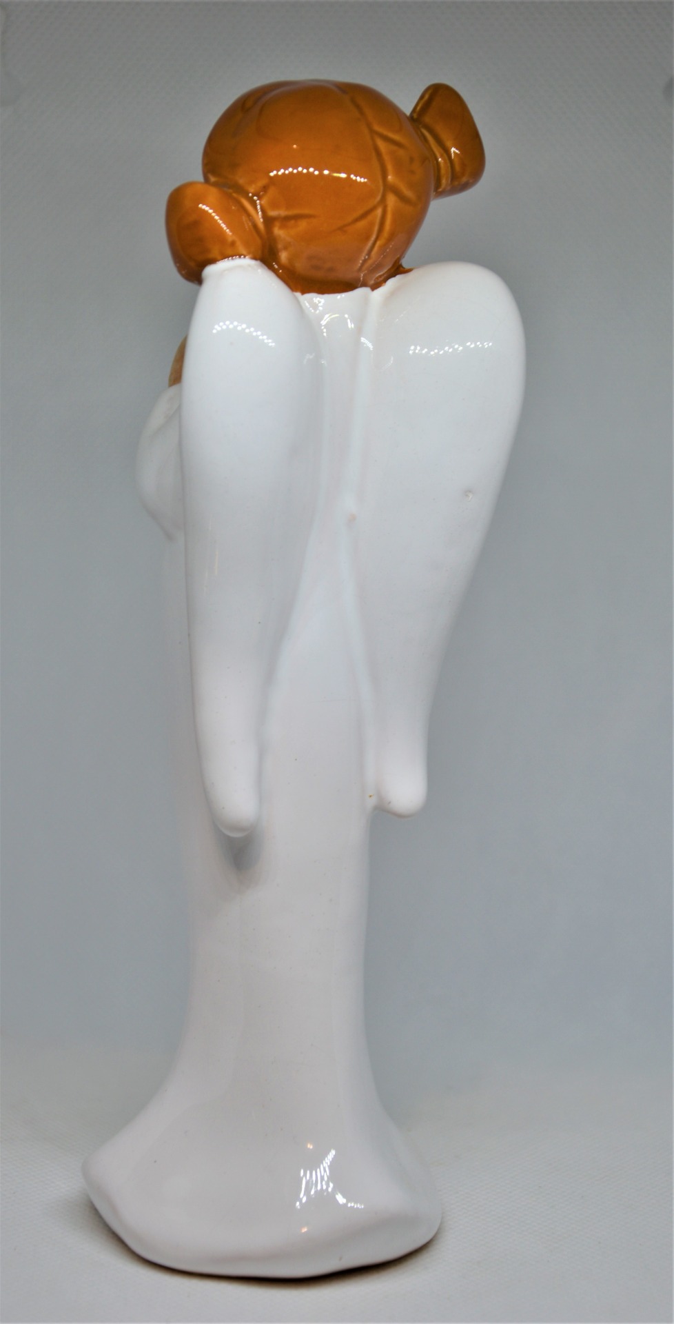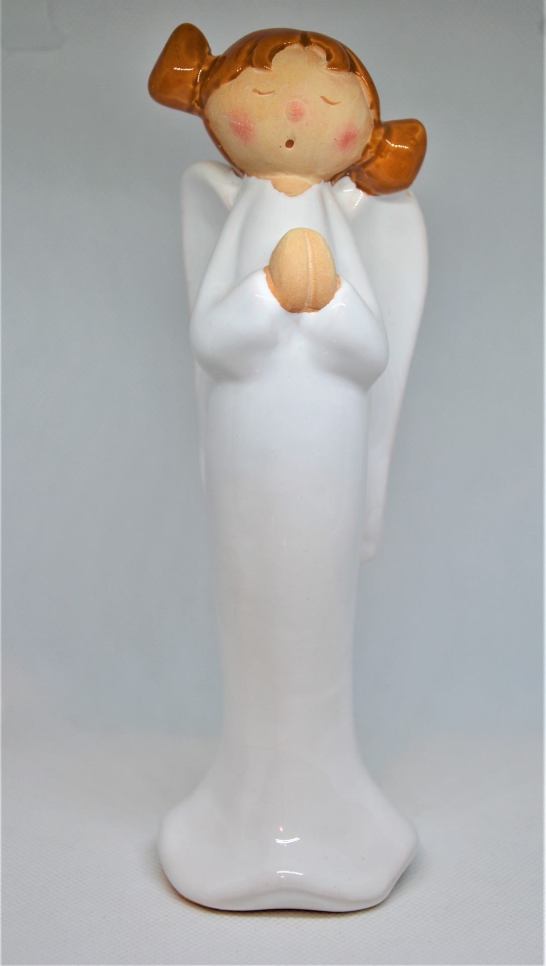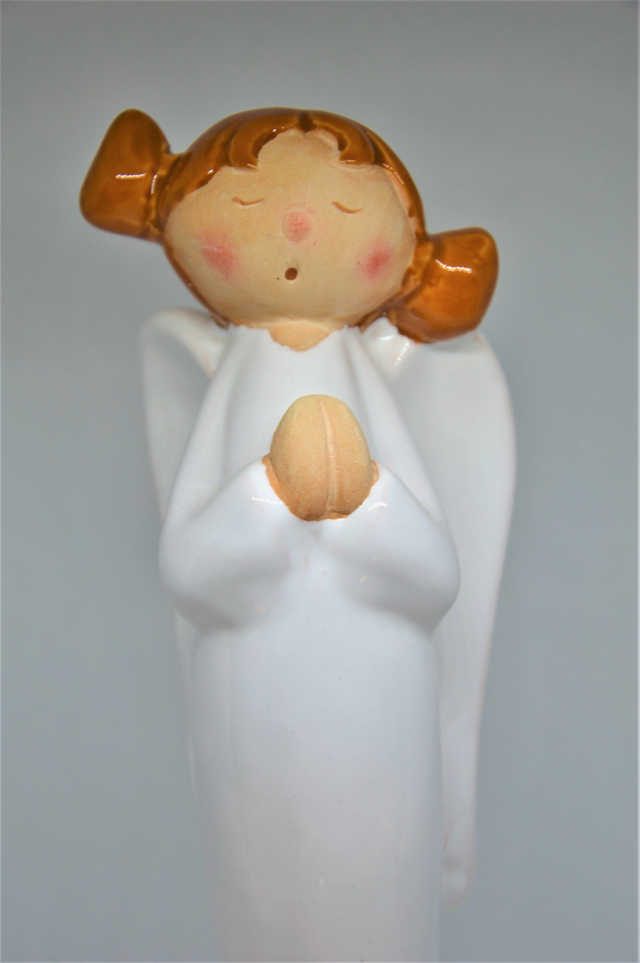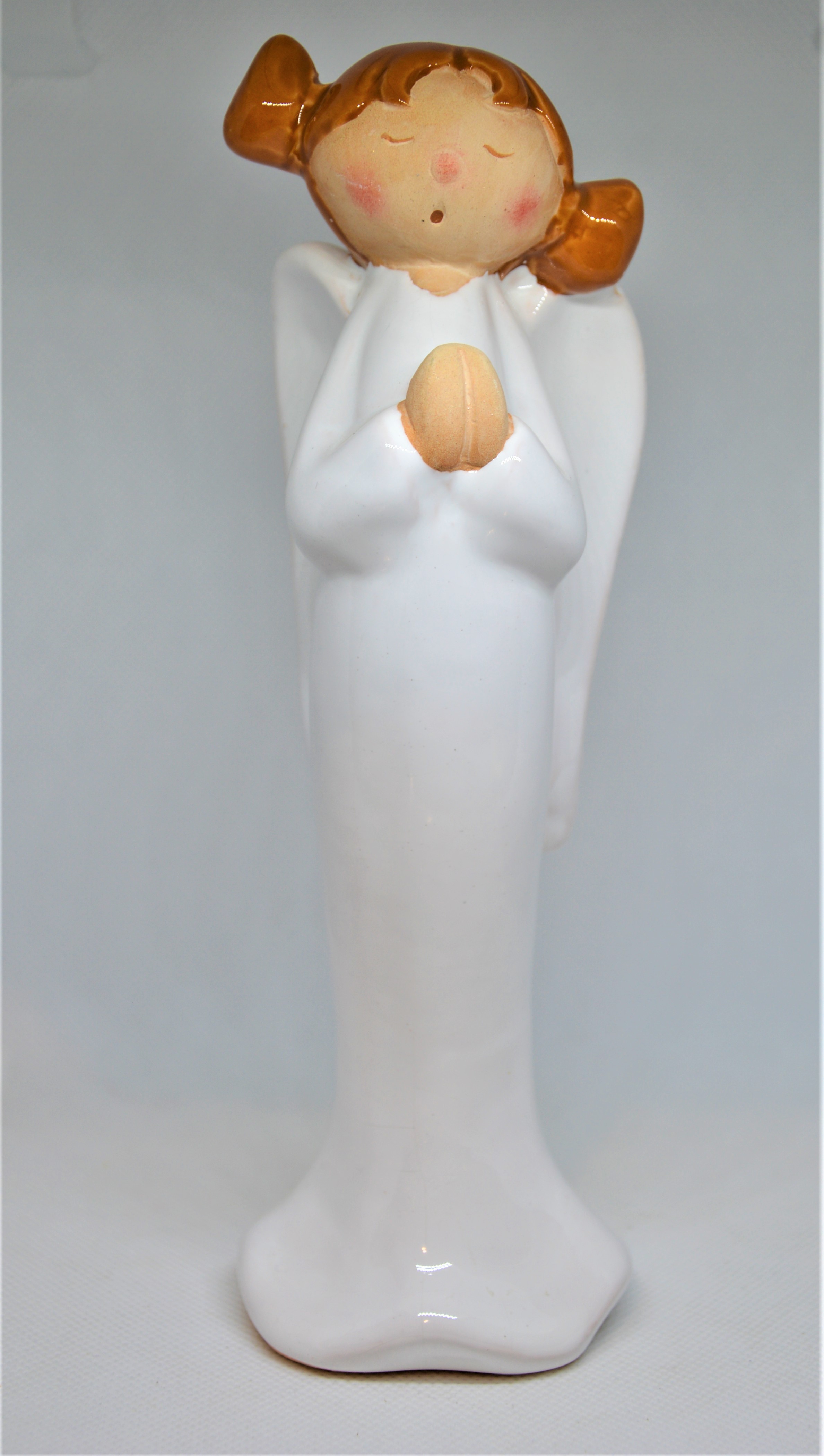 Bílý keramický anděl - roztomilá andělka s culíky, která má ruce sepjaté k modlitbě symbolizuje podporu a ochranu.