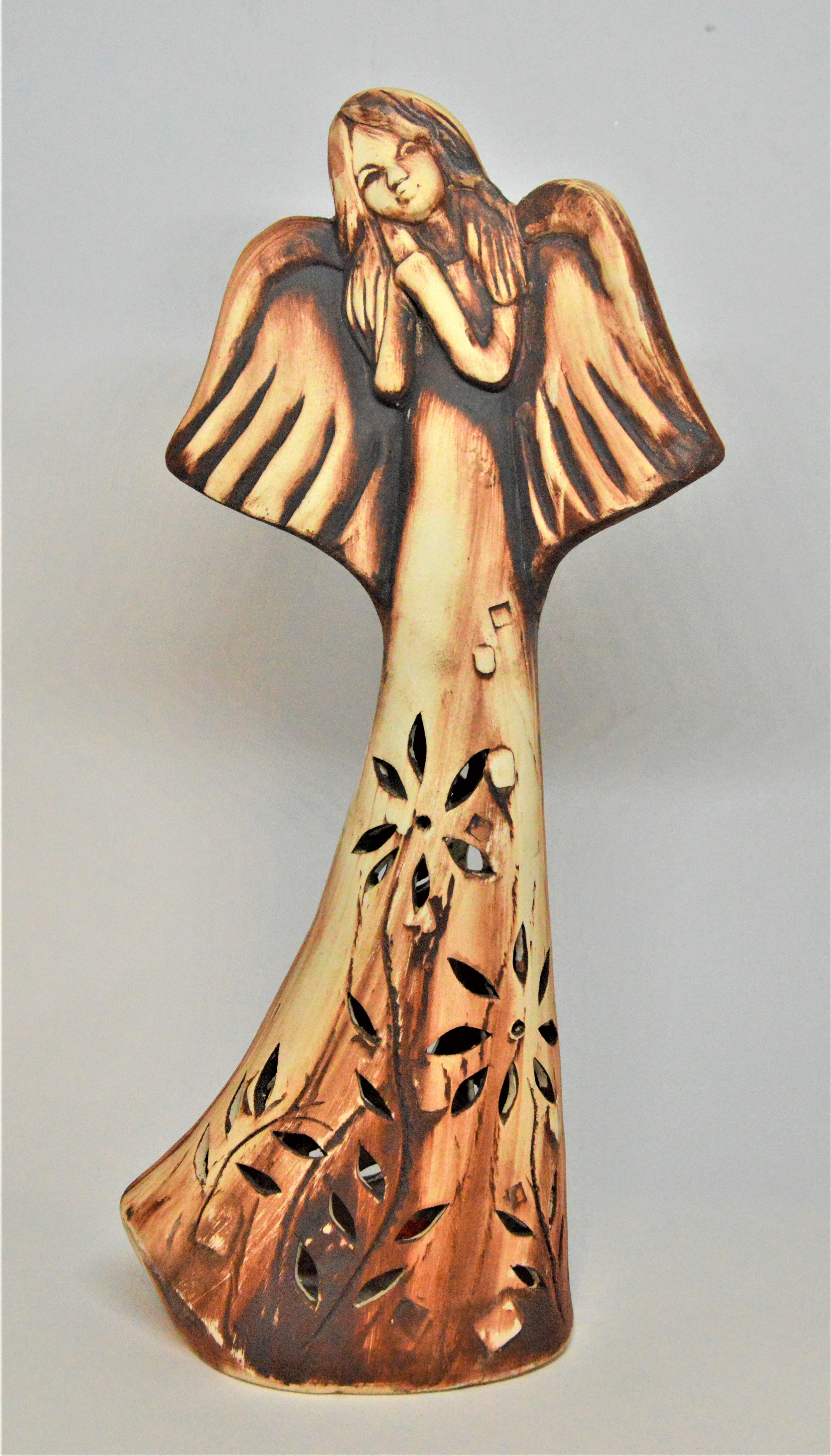 Keramický anděl - krásný hnědý ručně vyráběný anděl se zasněným výrazem vykouzlí pohodovou atmosféru.