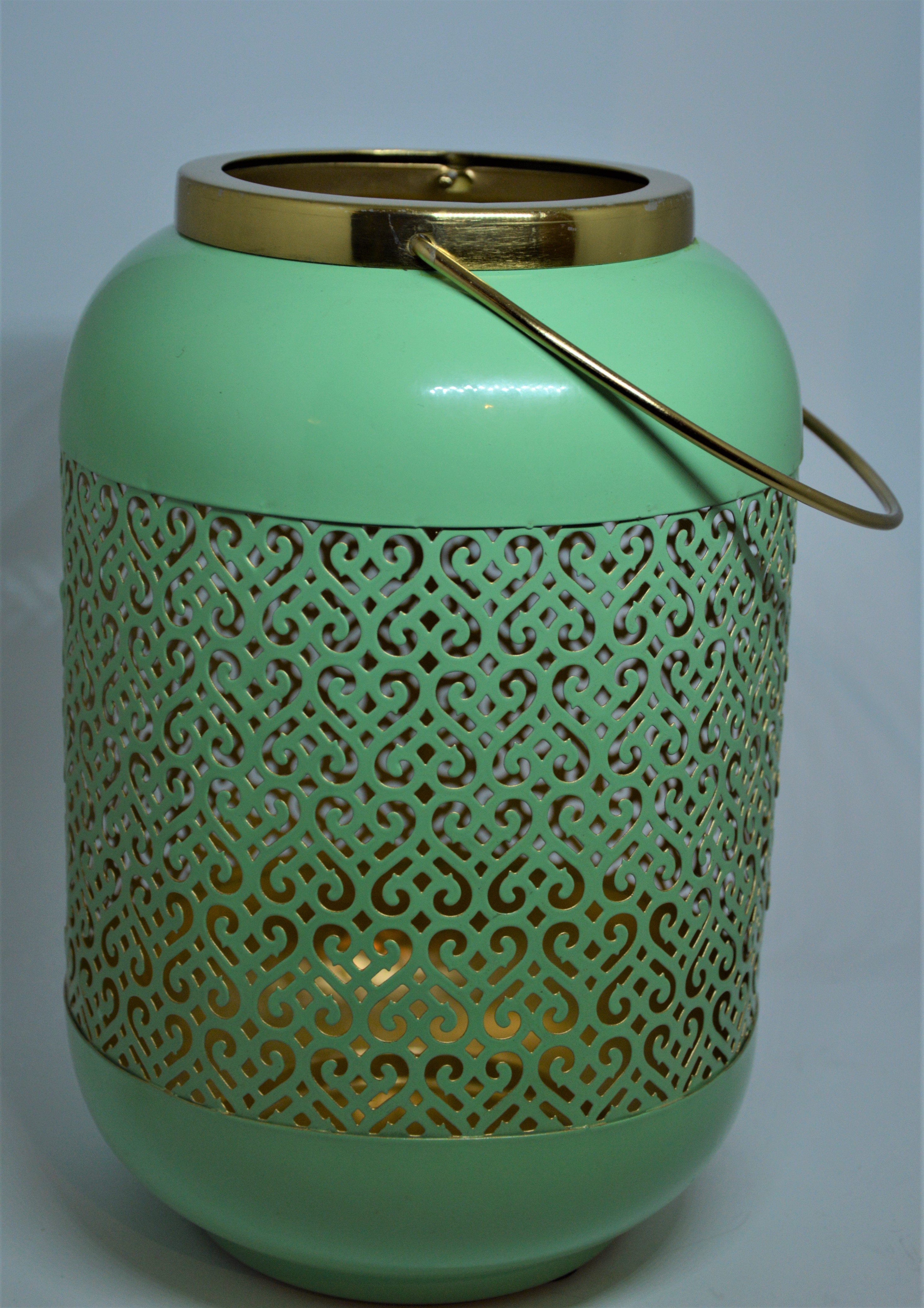 Kovová mátová lucerna - nádherná mátová kovová lucerna zaujme nejen svou netypickou barvou, ale i designem s ornamenty. K dokonalosti ji pak dotahují zlaté detaily, které společně vytváří dokonalou barevnou harmonii.