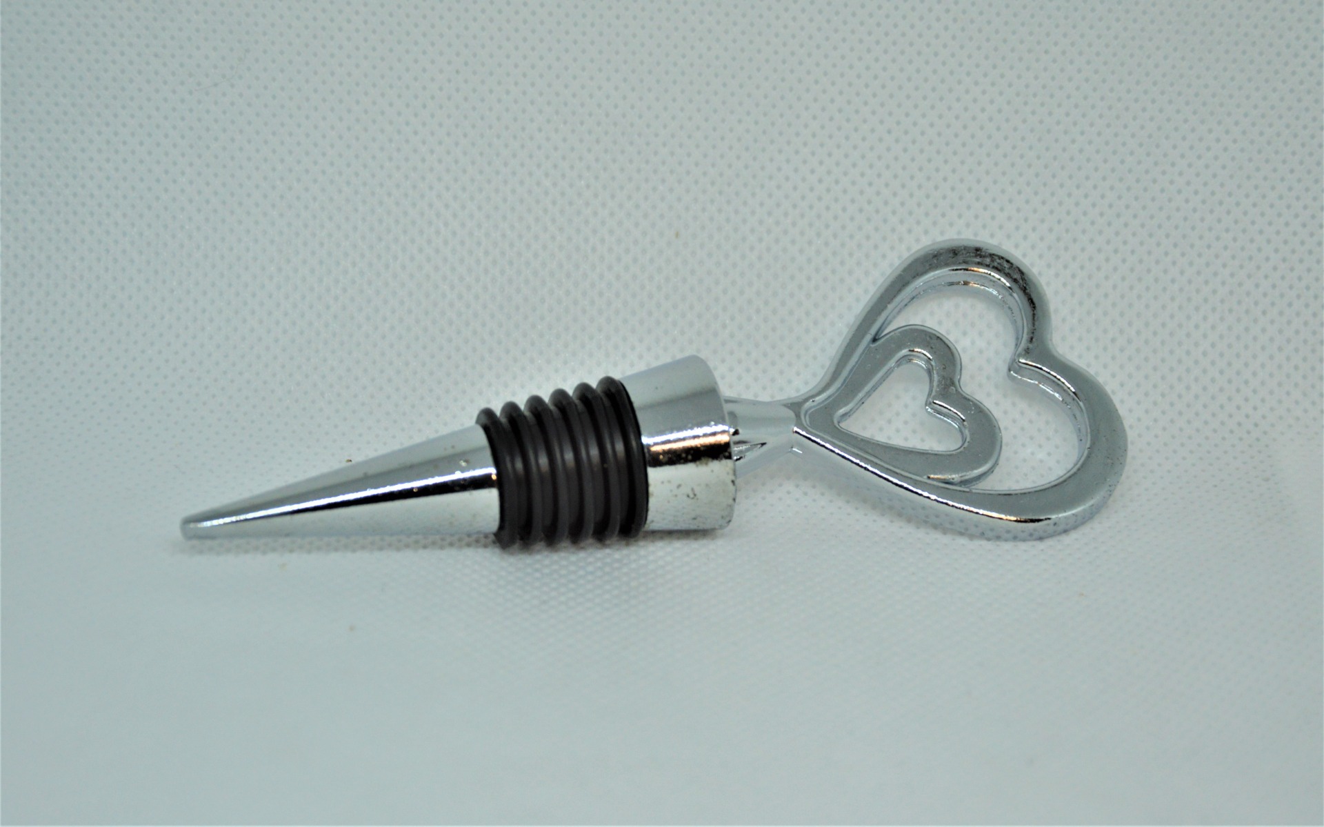 Zátka na víno Srdce - elegantní stříbrná kovová zátka s gumovým těsněním uchová nedopité víno dokonale čerstvé a uchrání ho před zvětráním. Ozdobit s ní můžete nejen vinné lahve, ale třeba také olej nebo ocet. Díky motivu srdce se stane oblíbeným dárkem všech zamilovaných, potěší jako drobnost k výročí nebo třeba ke svatebnímu daru.