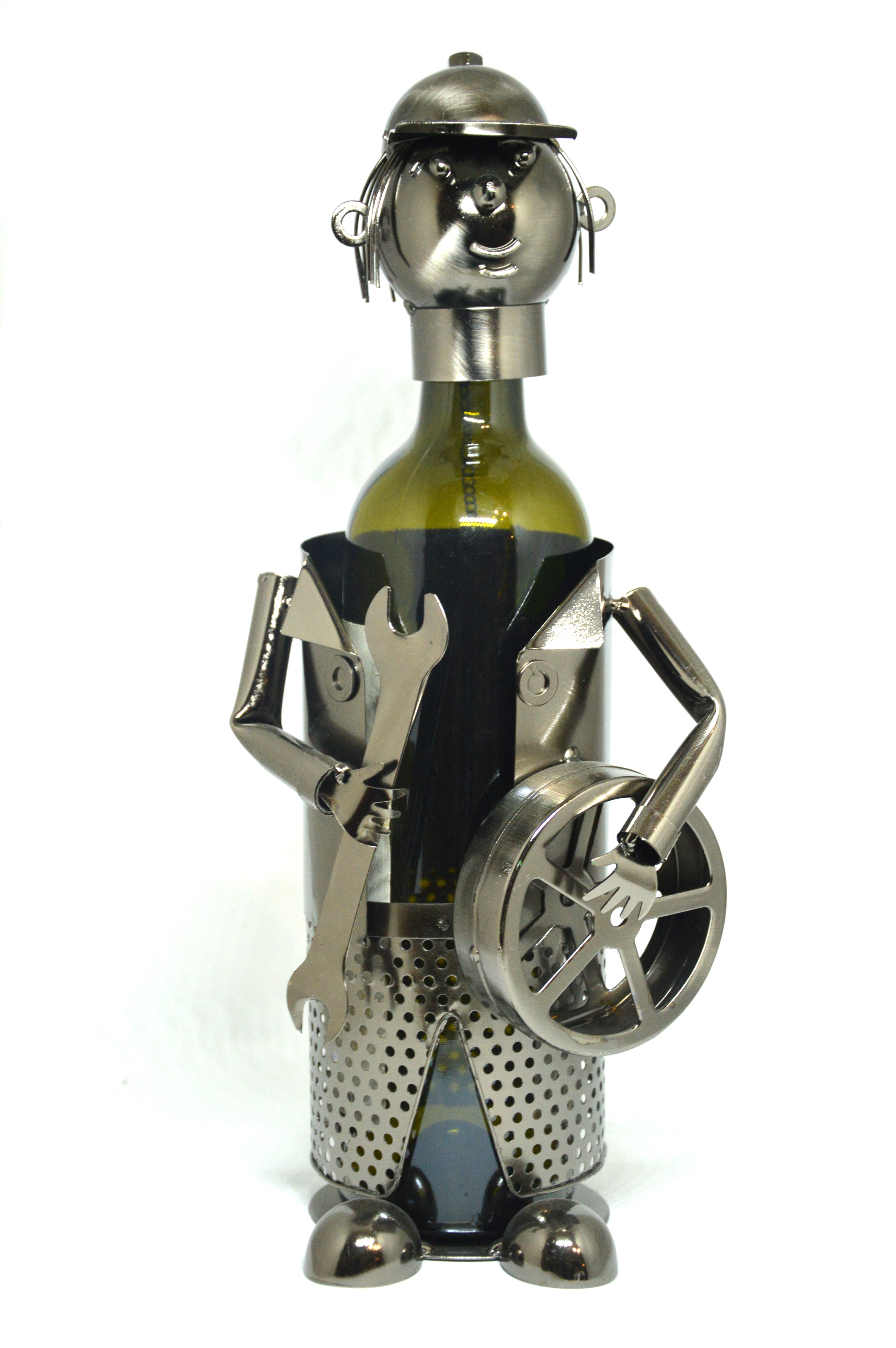 Kovový stojan na víno Automechanik - originální stojan udělá radost všem milovníkům vína. Představuje skvělý způsob, jak někomu darovat 0,75 l láhev lahodného nápoje.
