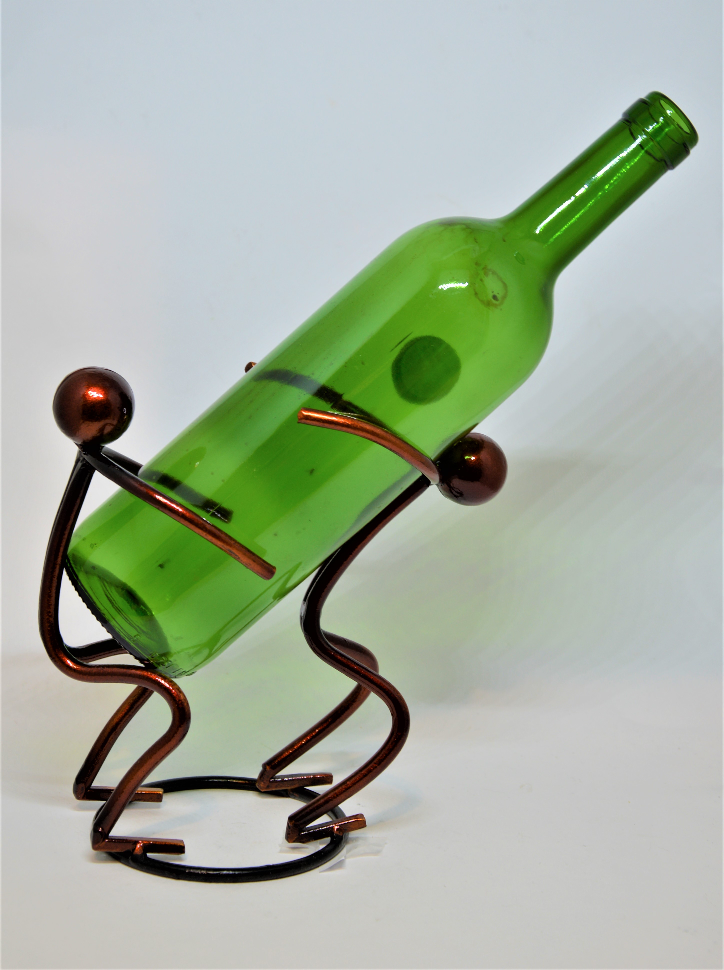 Kovový stojan na víno Dva panáčci - krásný kovový ručně vyráběný stojan pro všechny milovníky dobrého vína a netypických kousků.