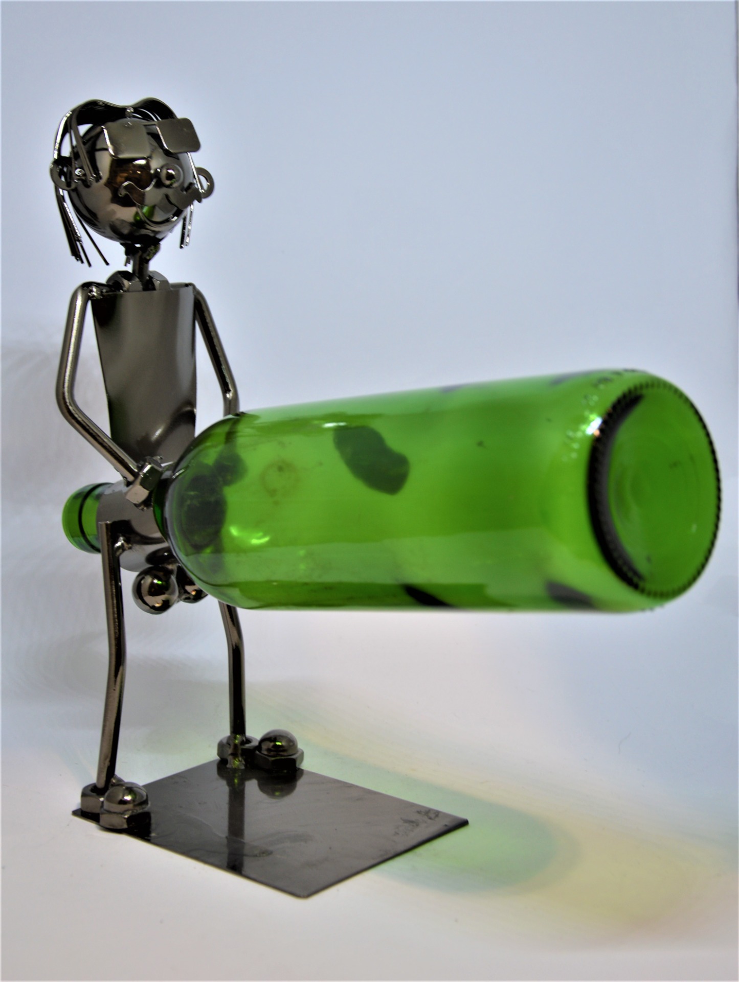 Kovový stojan na víno Erotoman - originální ručně vyráběný stojan potěší nejen všechny milovníky dobrého vína, ale i milovníky recese. Máte-li ve svém okolí někoho, kdo si dokáže udělat legraci sám ze sebe, věnujte mu tento stojan na víno, který ho zaručeně pobaví.