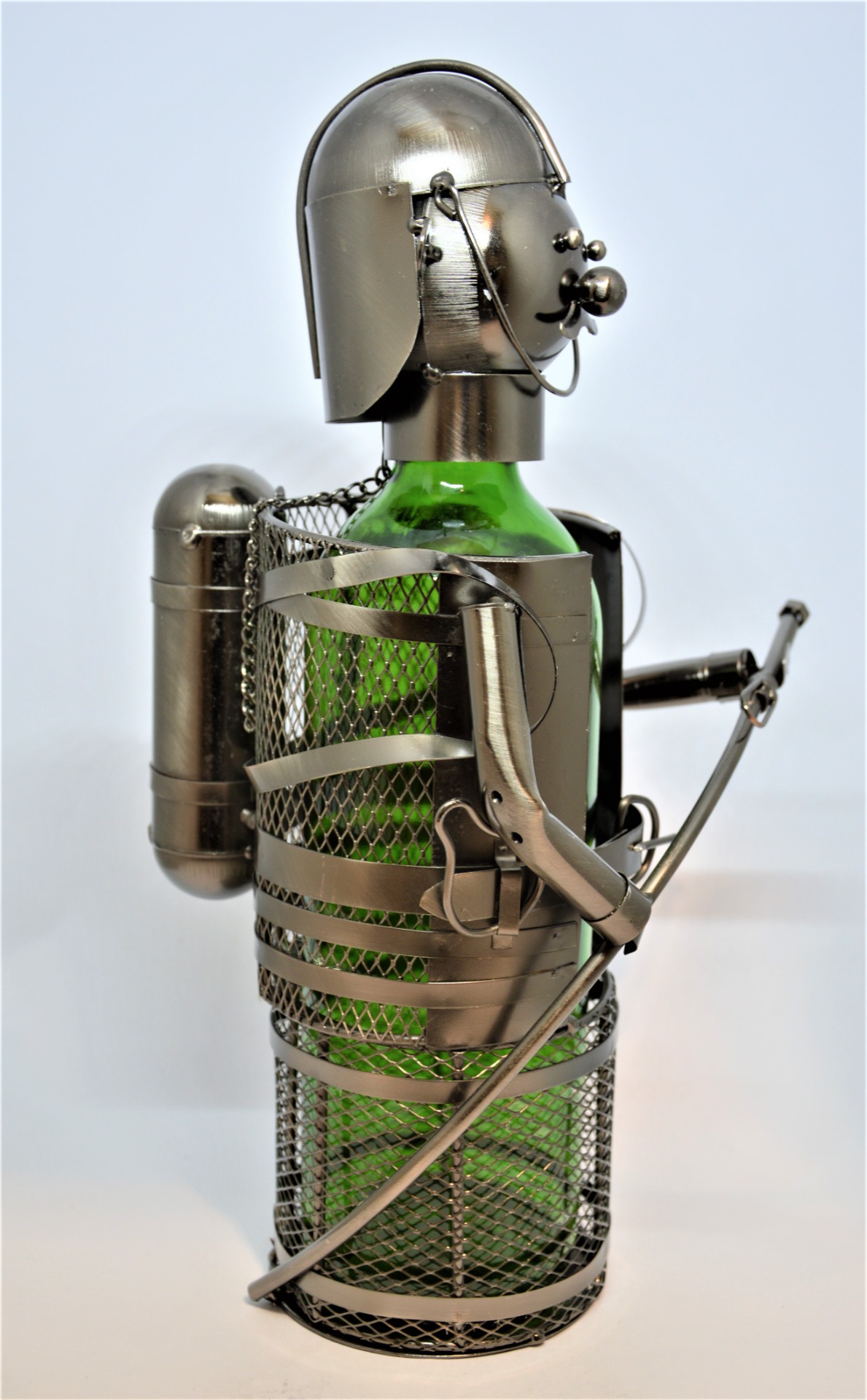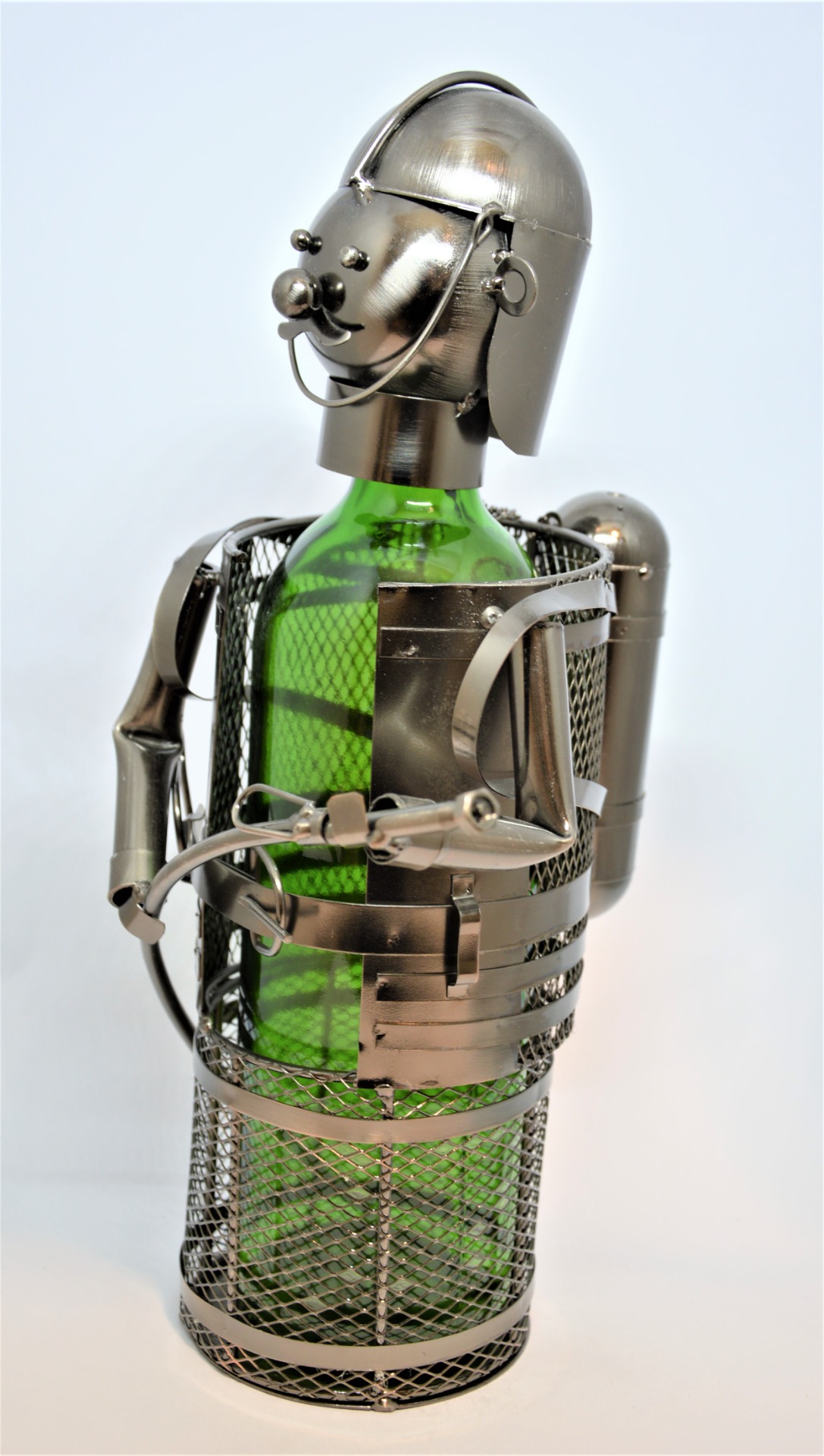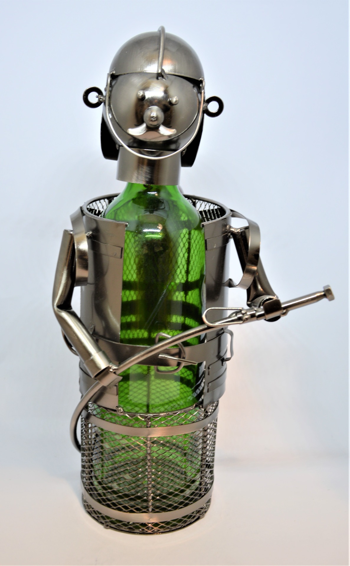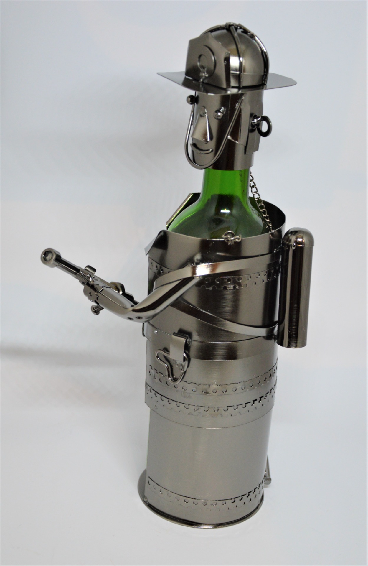 Kovový stojan na víno Hasič - ručně vyráběný originální stojan udělá radost nejen milovníkům dobrého vína, ale potěší také všechny dobrovolné či profesionální hasiče, kterým nechybí smysl pro humor.