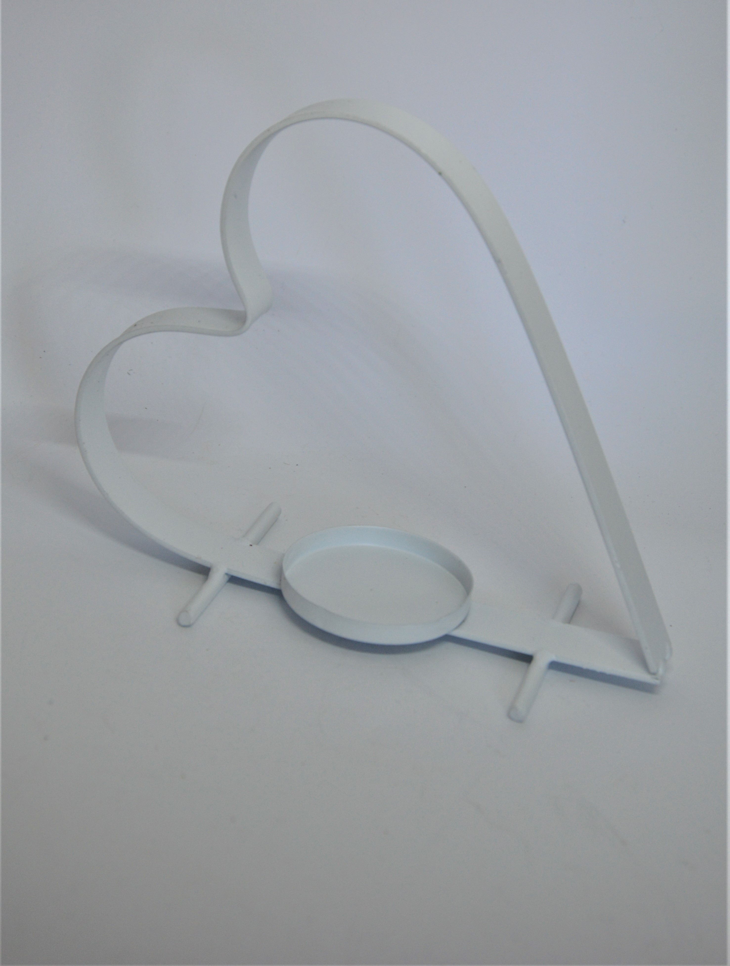 Kovový svícen srdce – netradičně řešený bílý kovový svícen ve tvaru srdíčka. Vykouzlí krásnou romantickou atmosféru třeba při společné večeři.