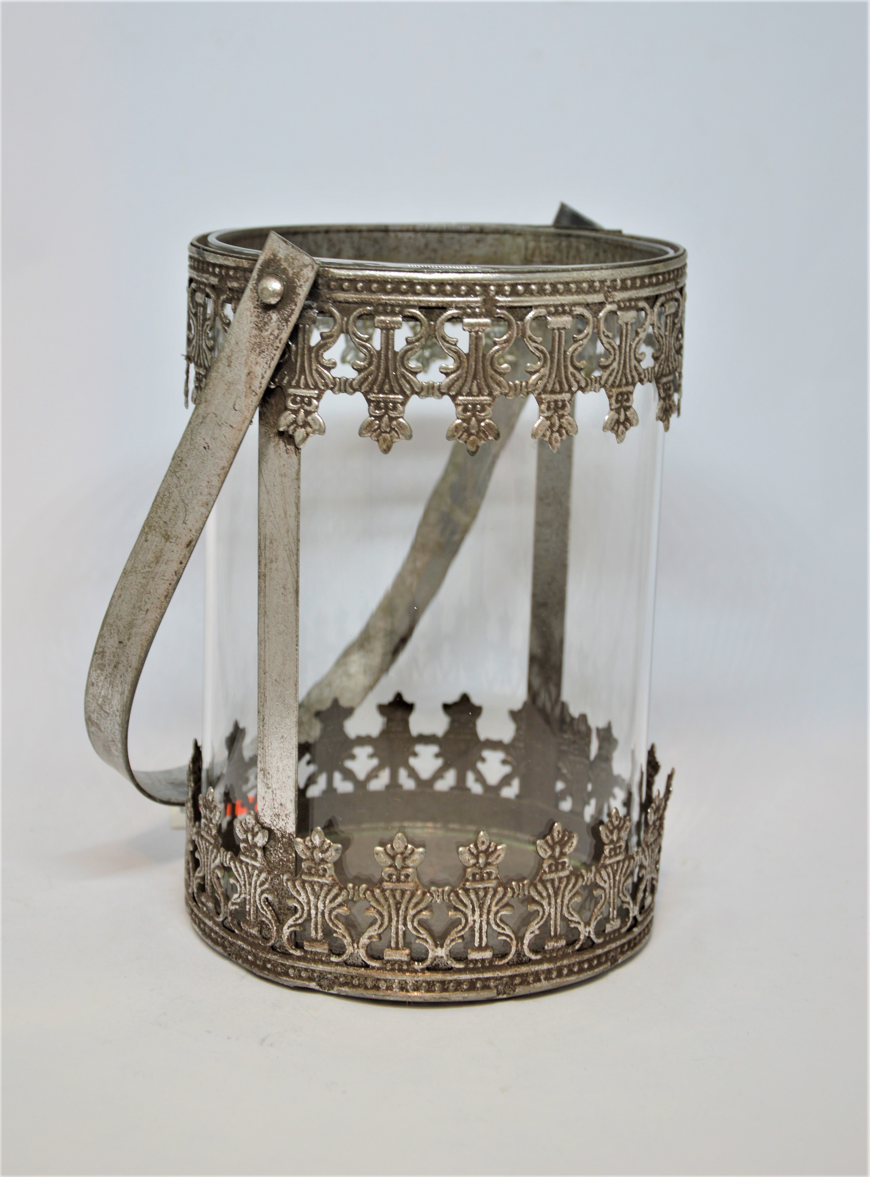 Lucerna kov/sklo - kovová lucerna s praktickým uchem v zajímavém vintage designu a s propracovanými detaily.