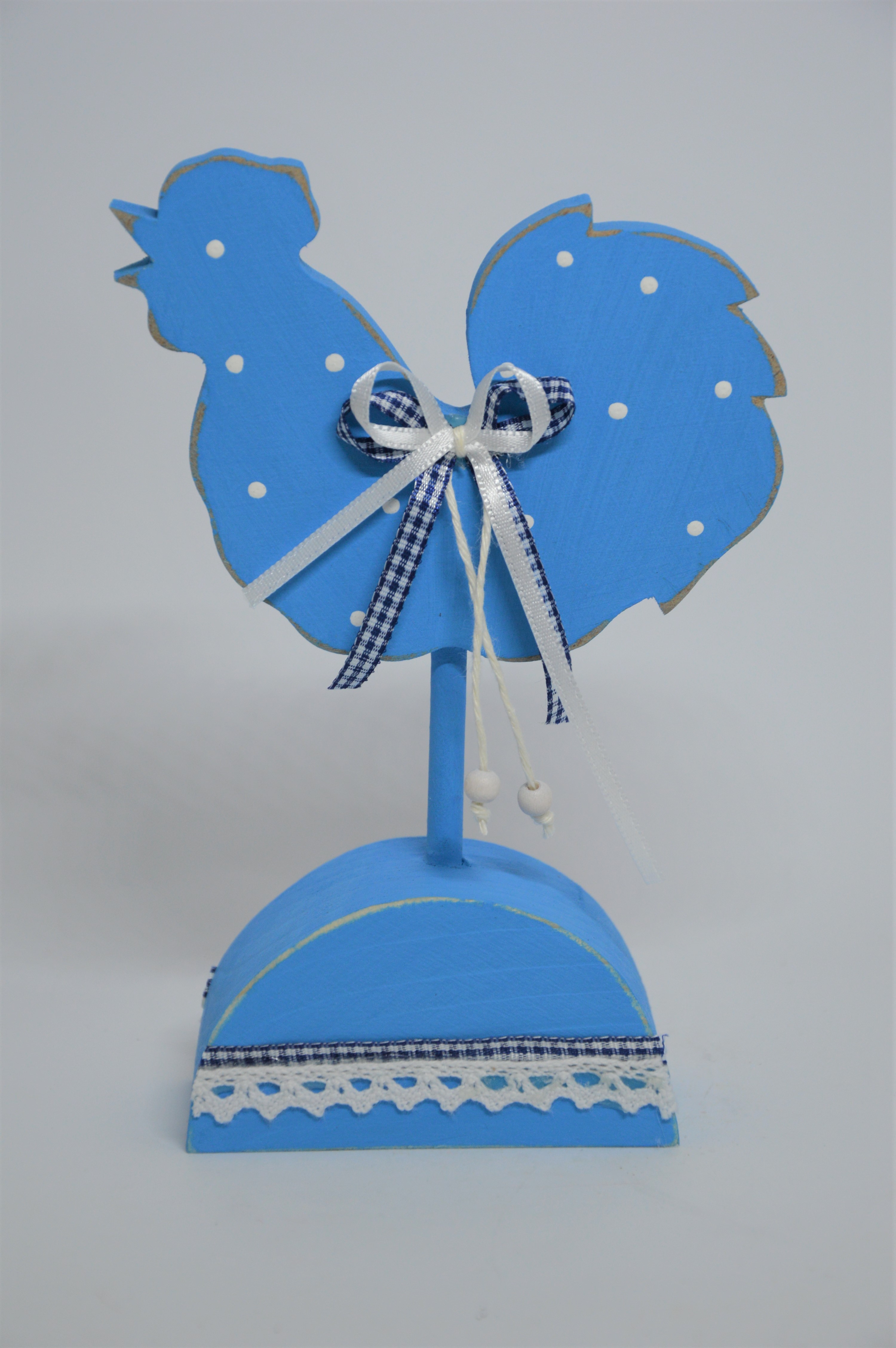 Modrá dřevěná slepička - krásná ručně vyráběná modrá dřevěná slepička je zdobená bílými puntíky.