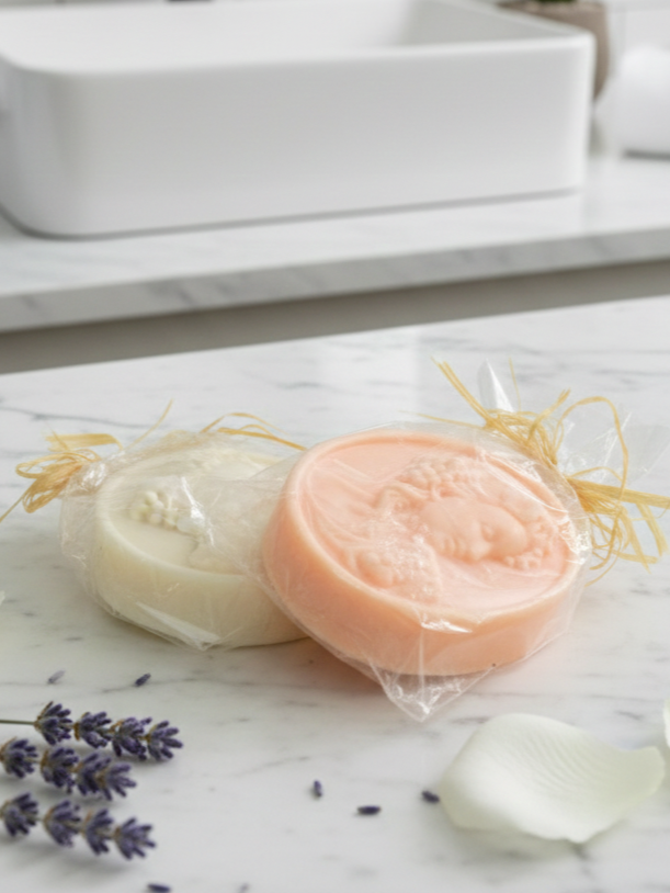 Mýdlo oválné - s dekorem ve tvaru obličeje. Jemně čistí pokožku a nádherně voní.