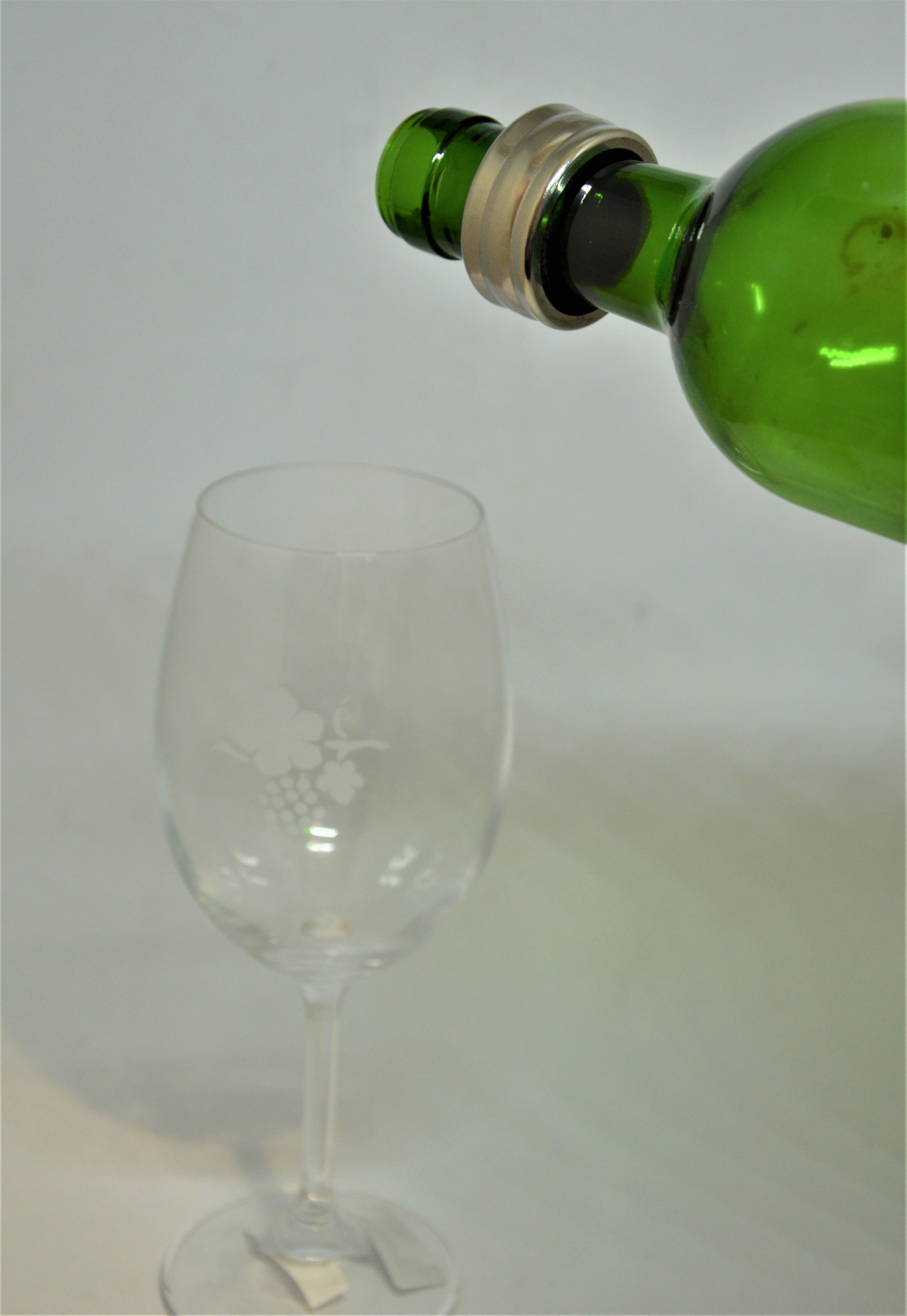 Kovový odkapávací kroužek na víno s plstěnou vložkou - zabrání nežádoucímu stékání vína po lahvi. Nemusíte se tak bát žádných nežádoucích skvrn na stole.