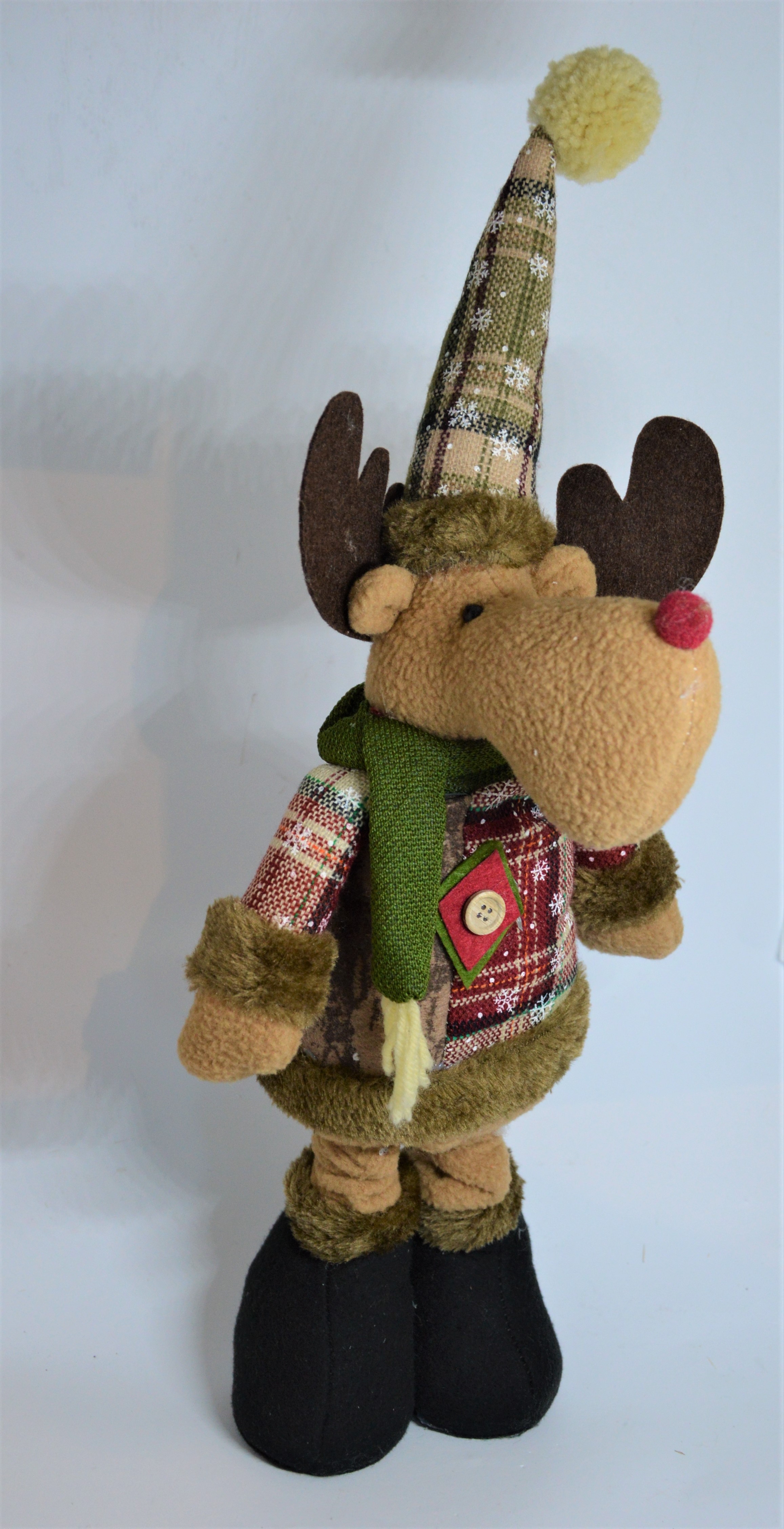 Plyšový sob – krásná dekorace v typických vánočních barvách, kterou díky její výšce rozhodně nikdo nepřehlédne.