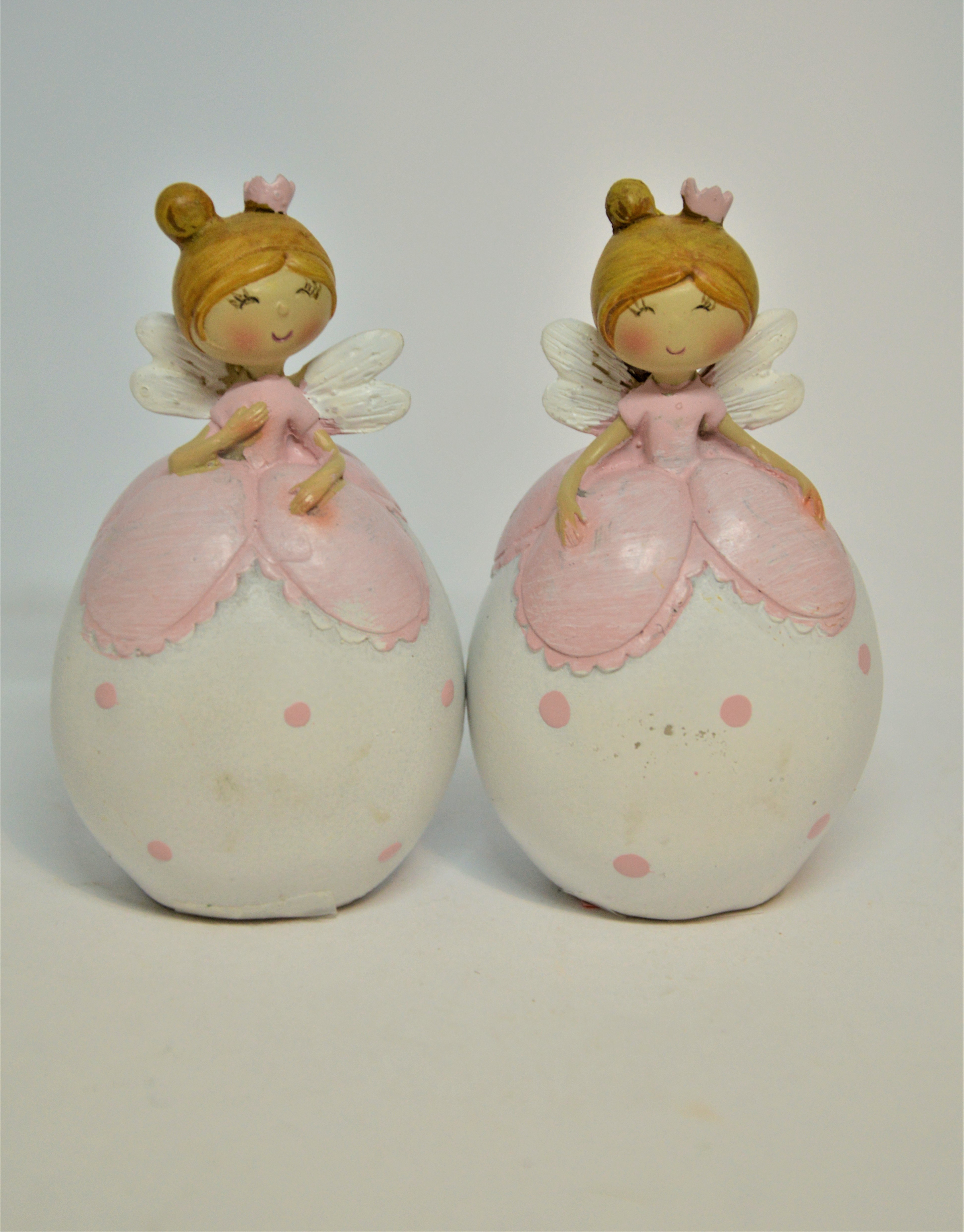 Roztomilý malý anděl/víla - baculatý, s kulatou sukýnkou, bílo růžový, světlé vlasy stažené do drdolu a ozdobené růžovou korunkou.