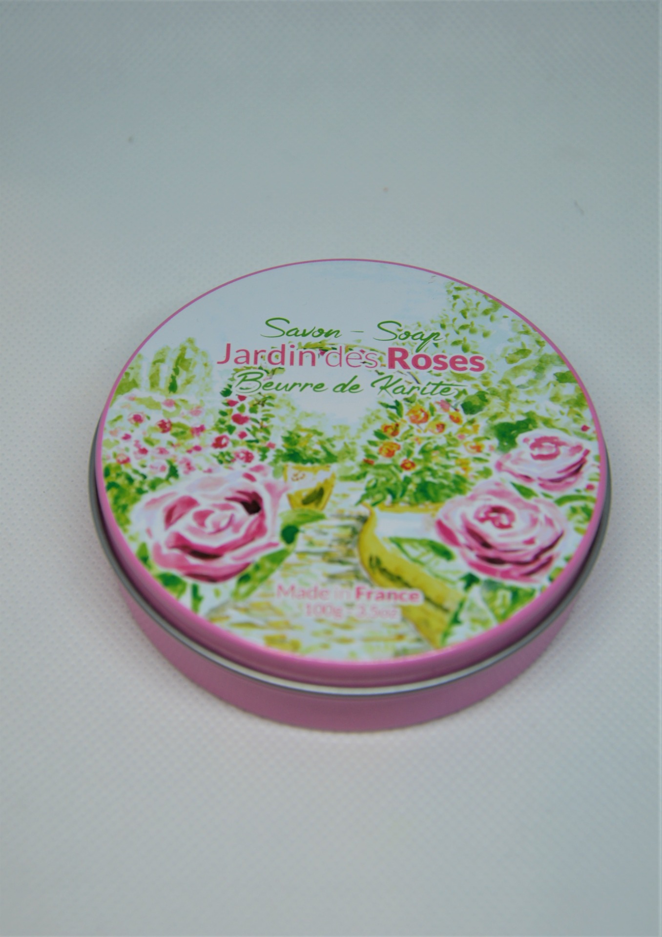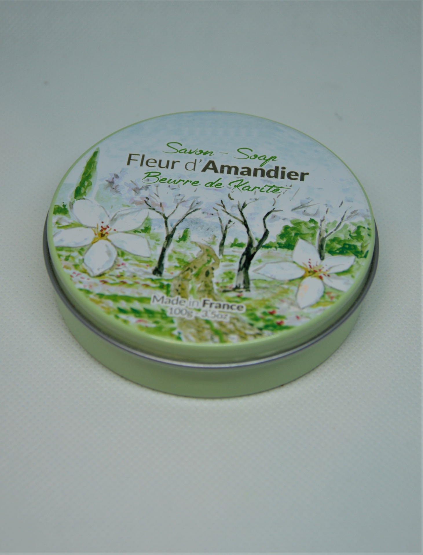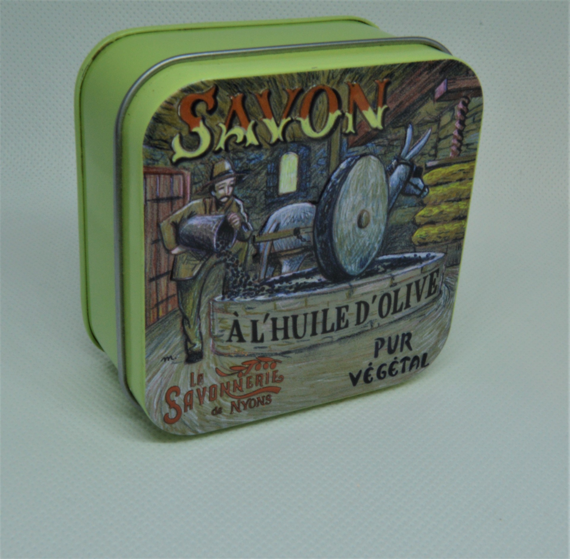 Francouzské luxusní přírodní mýdlo v plechové krabičce je obohacené BIO bambuckým máslem.