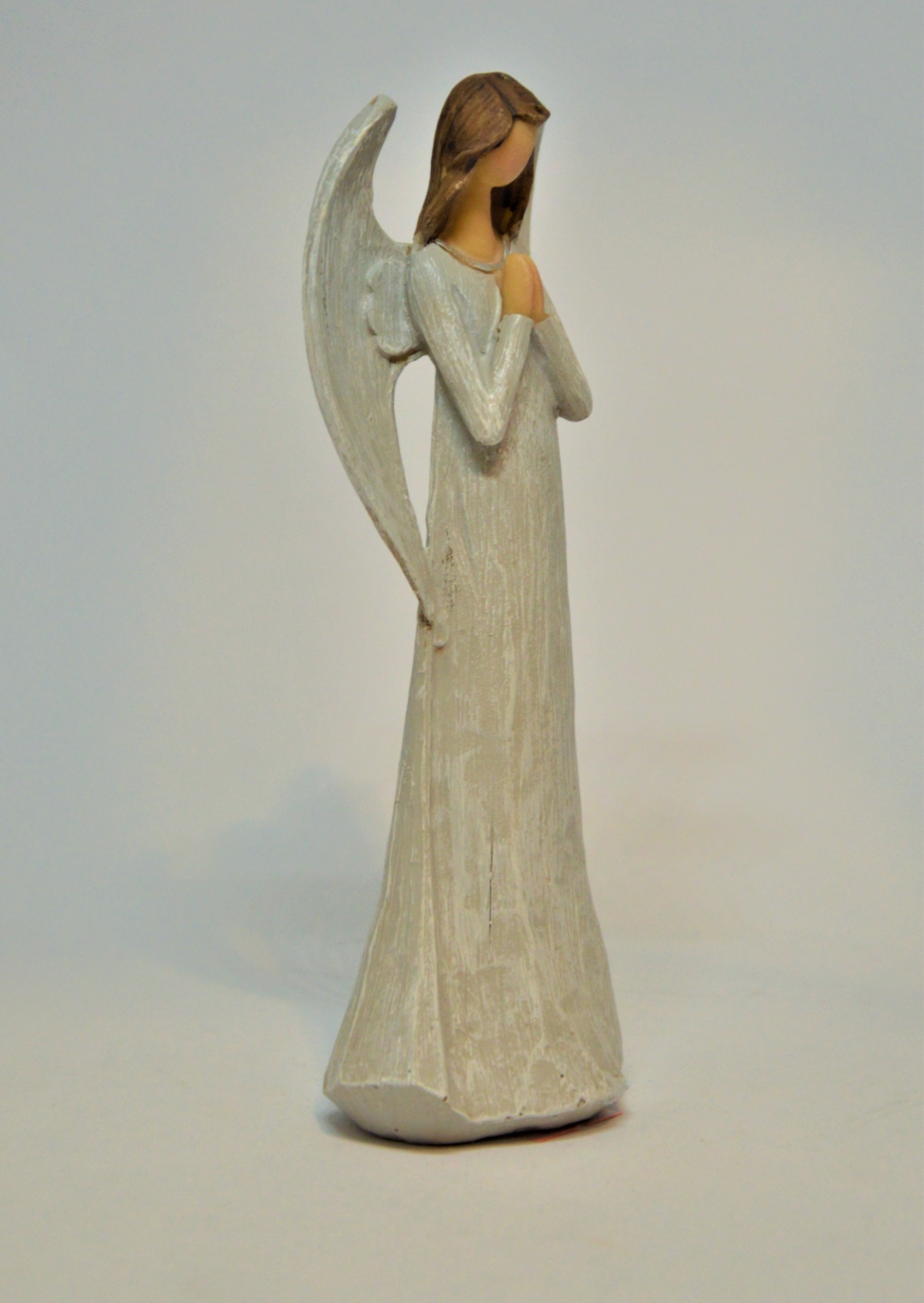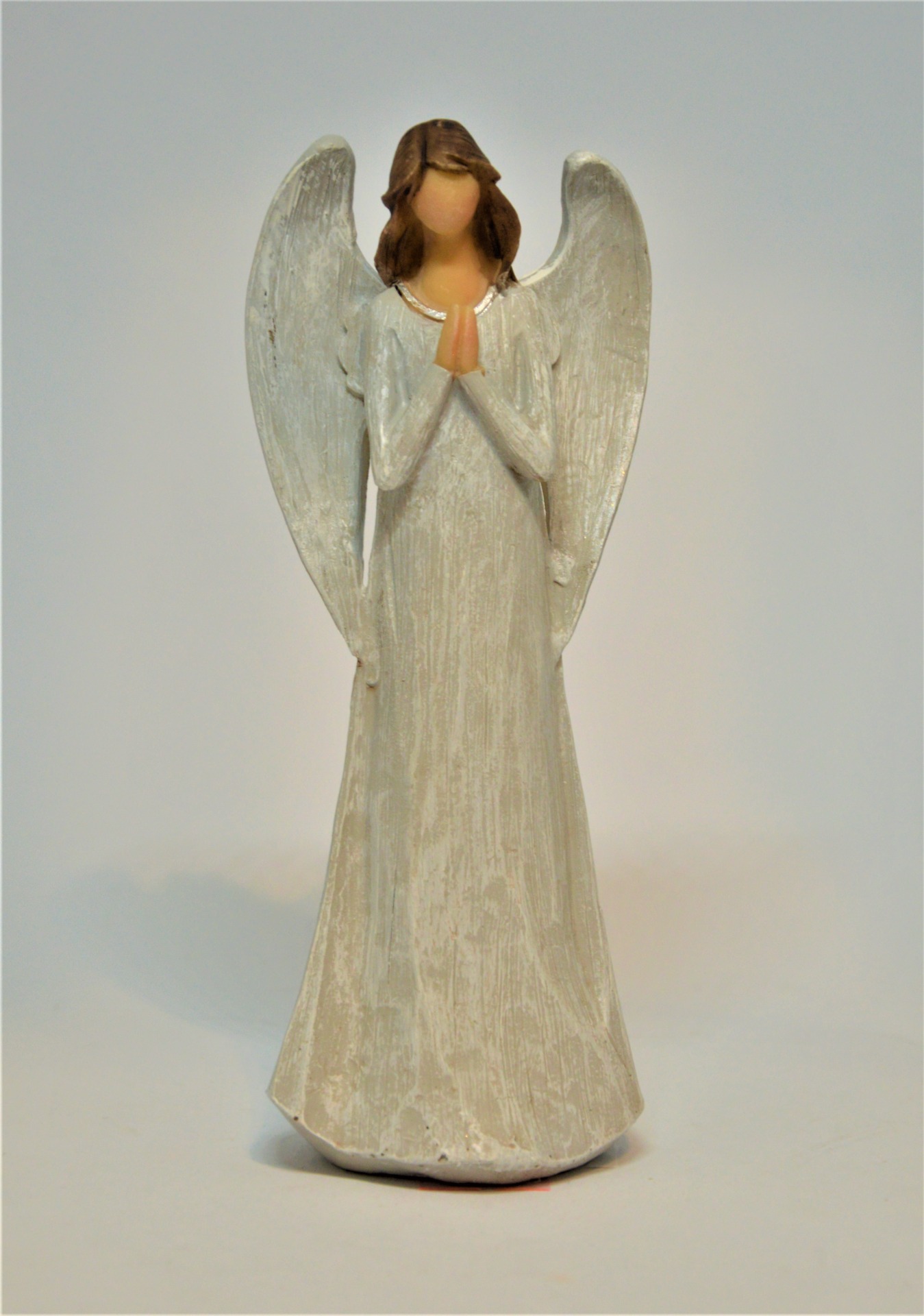 Andělíček - šedý andělíček s rukama sepjatýma k modlitbě. Vyvedený v moderním čistém designu podle posledních trendů - s nezřetelnou tváří, která dává prostor pro fantazii.