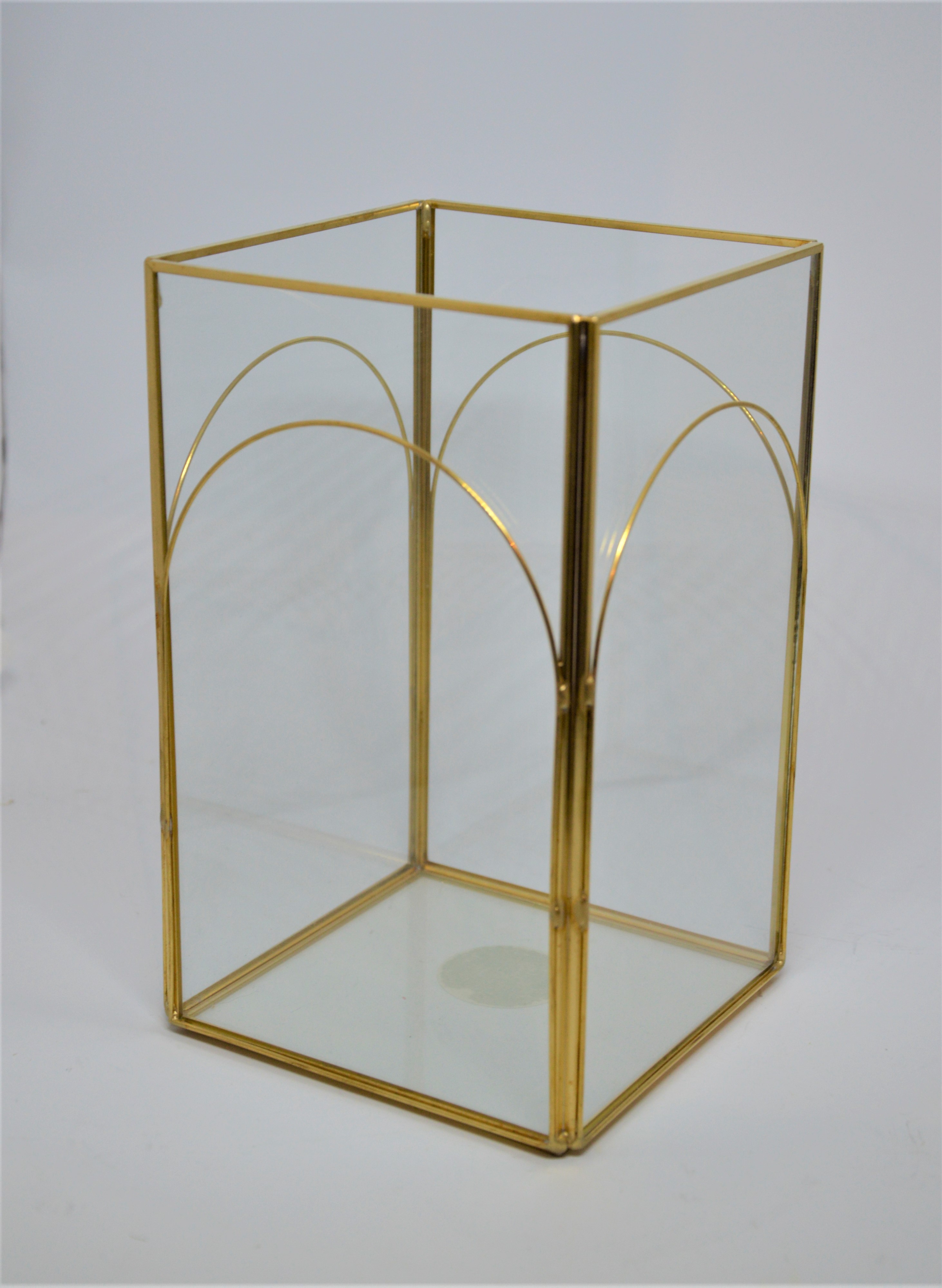 Skleněný zlatý svícen - svícen ze skla a kovu, který dokonale demonstruje, že v jednoduchosti se ukrývá krása.