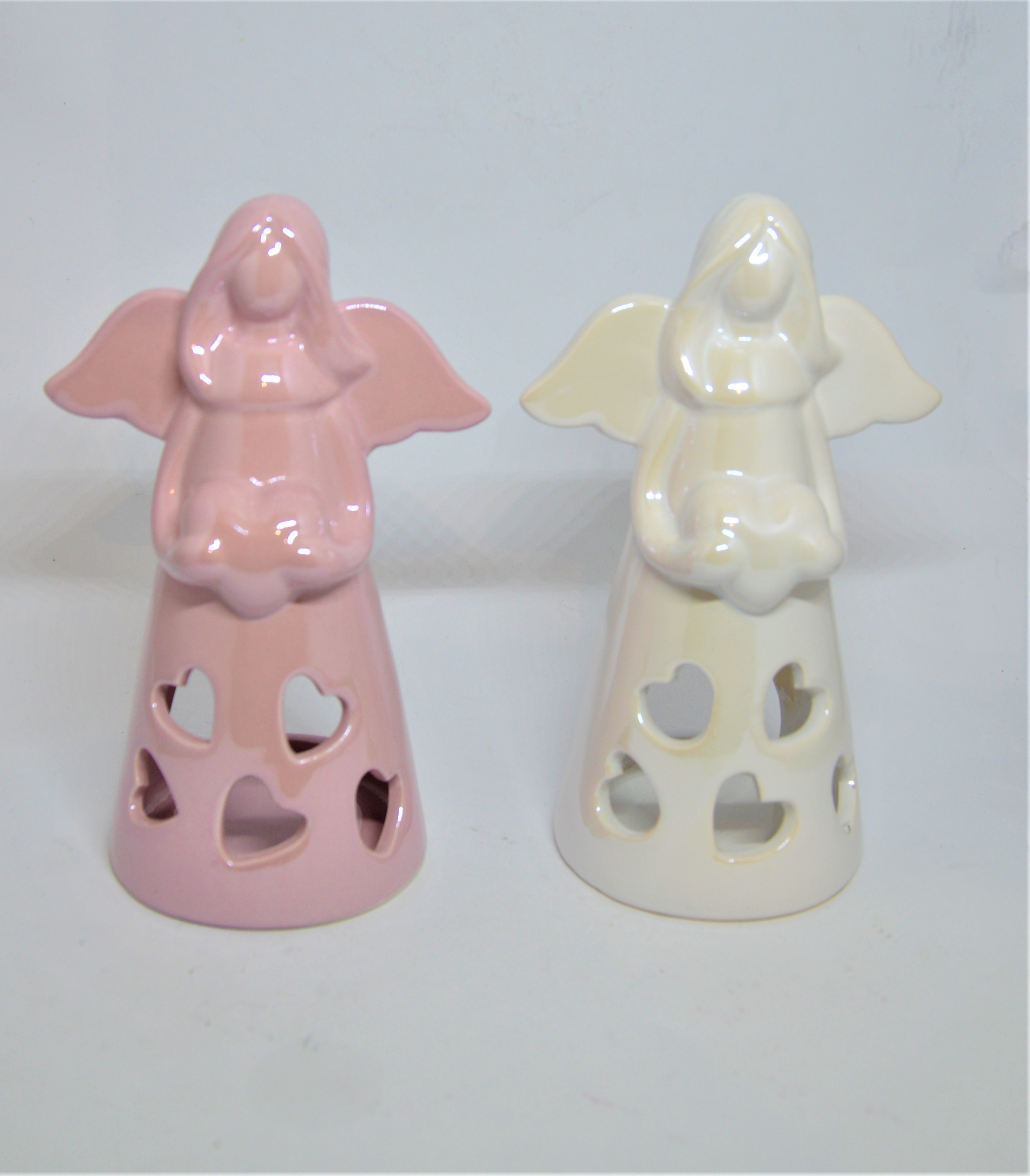 Svícen anděl - keramický svícen ve tvaru anděla se srdíčkem symbolizuje lásku i bezpečí. Je ozdobený výřezy srdíček, skrz které krásně prosvítá mihotavý plamínek svíčky.