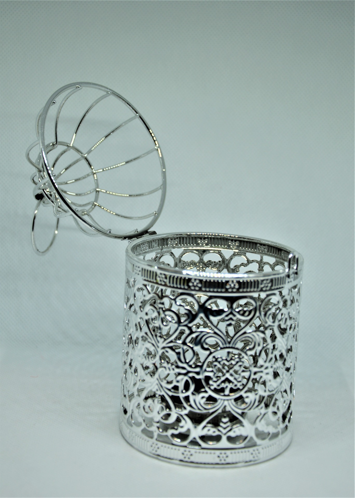 Rozměry: průměr na svíčku 4 cm, průměr klece 8 cm, výška 14 cm.