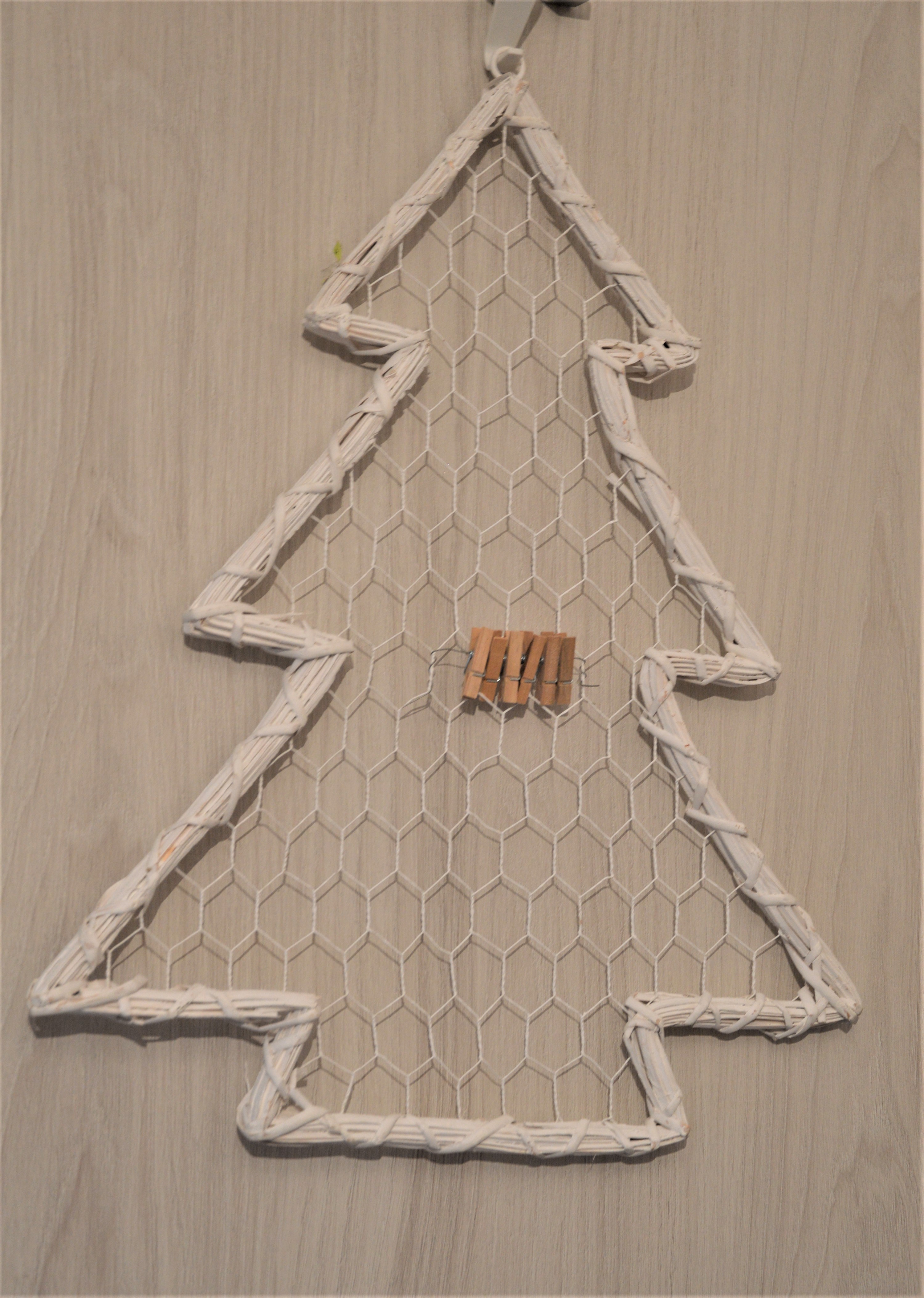 Vánoční dekorace – bílý závěsný stromeček ze dřeva a drátu poslouží jako originální vánoční dekorace.