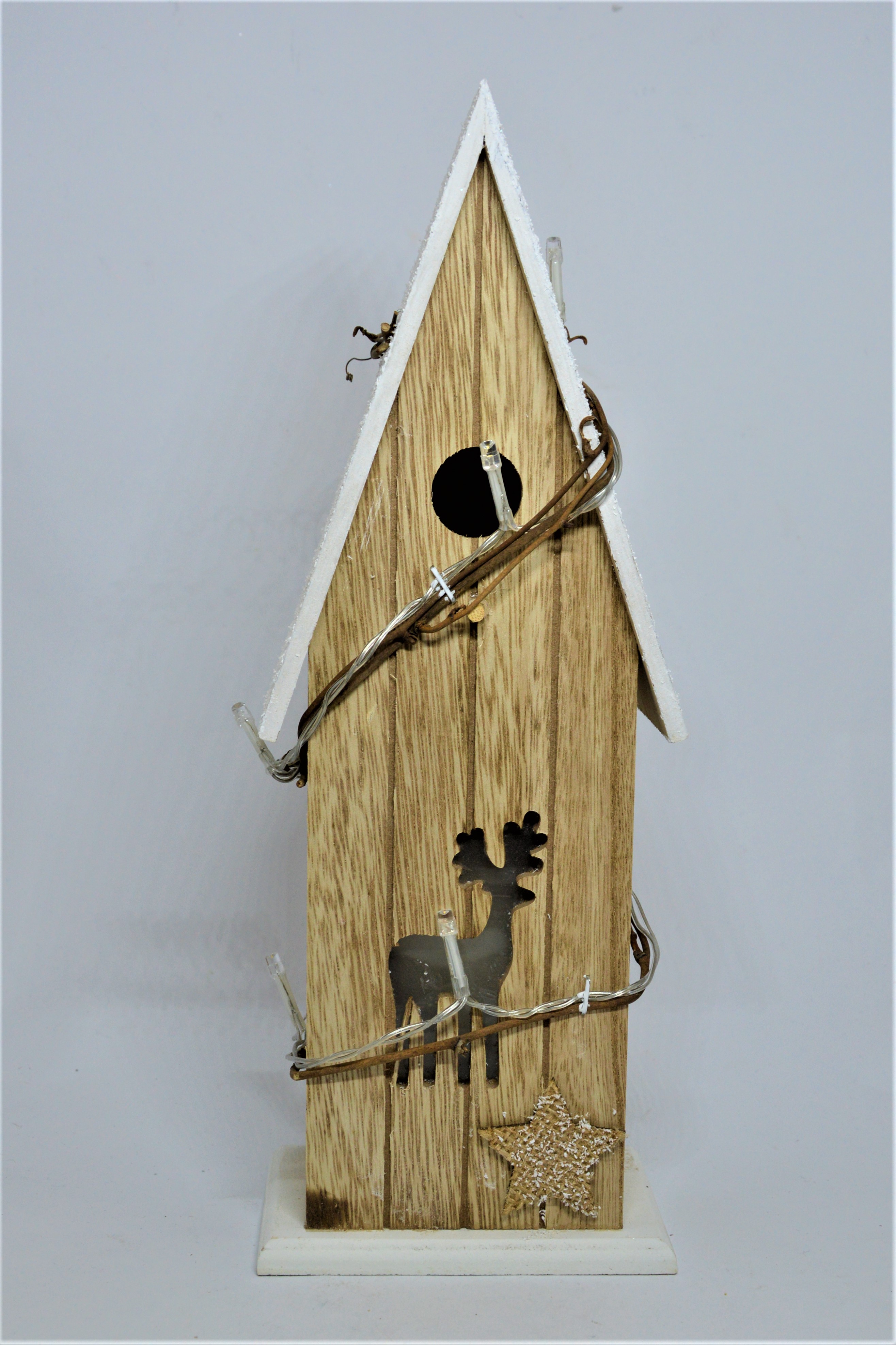 Vánoční dřevěný domeček s LED světlem - romantická dřevěná svítící dekorace se sobem vás naladí na tu správnou vánoční atmosféru.