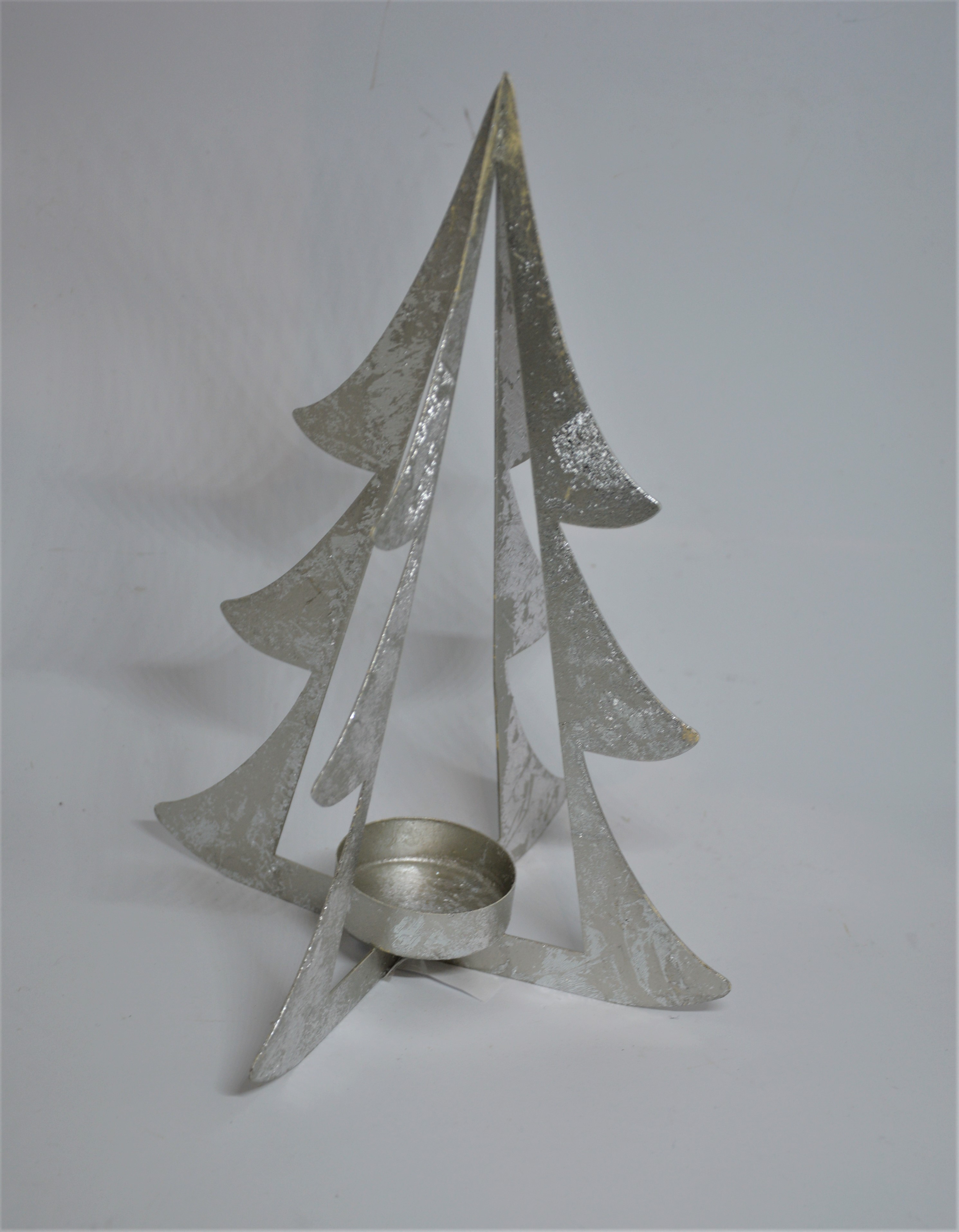 Vánoční svícen stromek – netradiční kovový svícen v designu „zasněženého” stromečku na čajovou svíčku.