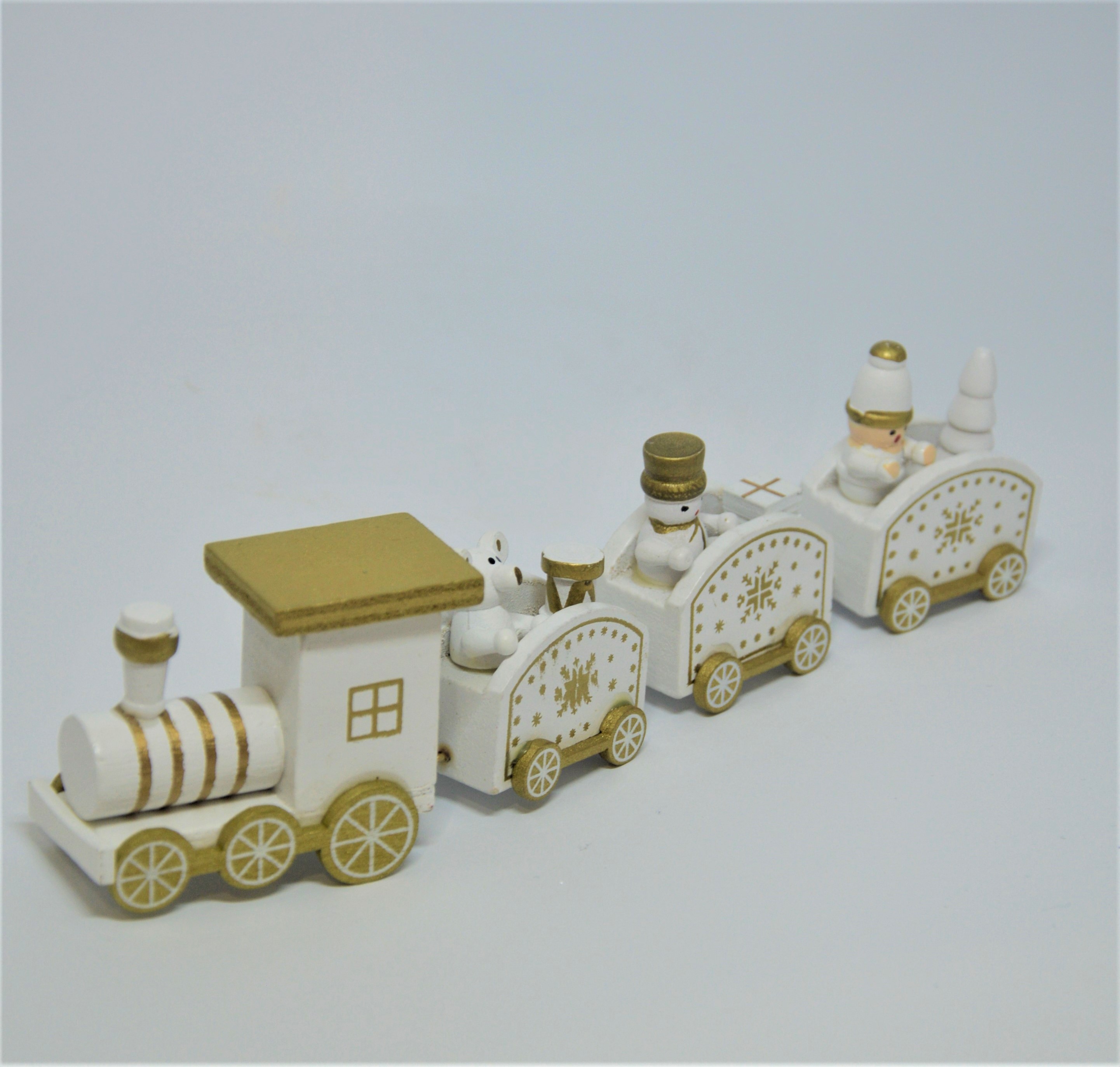 Vánoční vláček - dřevěný vláček v bílé a zlaté barvě se stane originální vánoční dekorací.