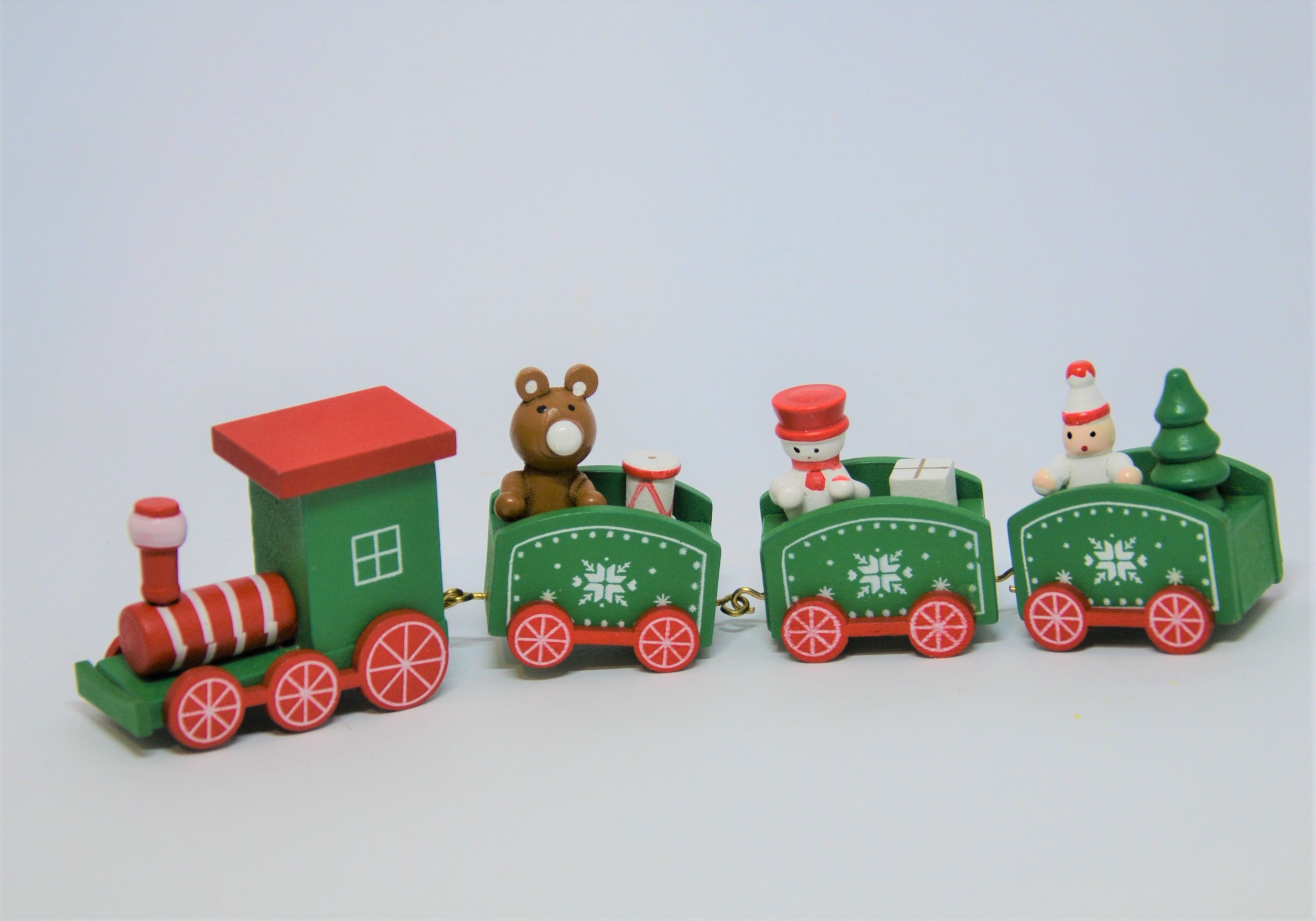 Vánoční vláček - dřevěný vláček v klasických vánočních barvách, zelené a červené, se stane originální vánoční dekorací.