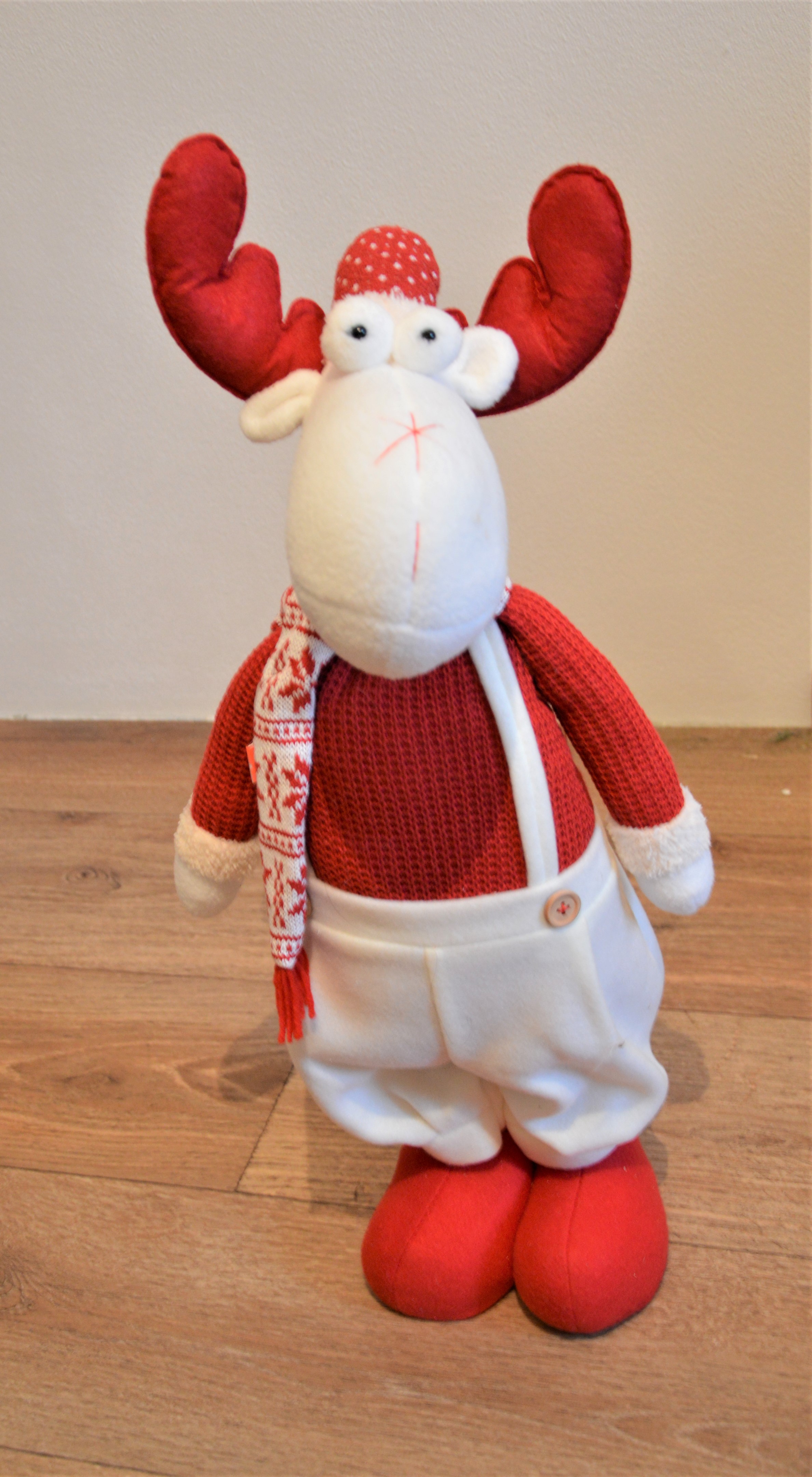 Velký plyšový sob – velký stojící plyšový sob v typických vánočních barvách, červené a bílé.