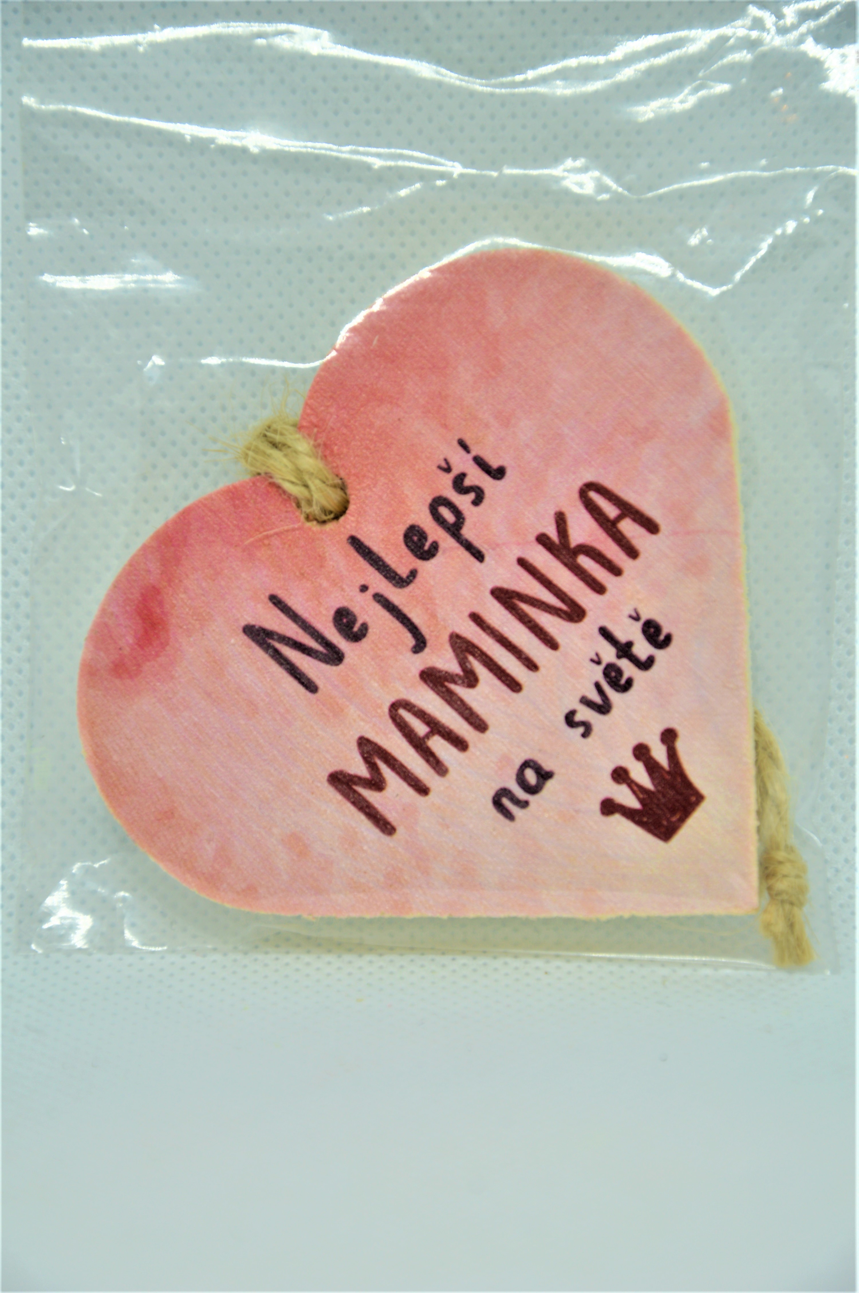 Vonítko do prádla - dřevěné srdce ručně parfémované - s nápisem Nejlepší maminka na světě.