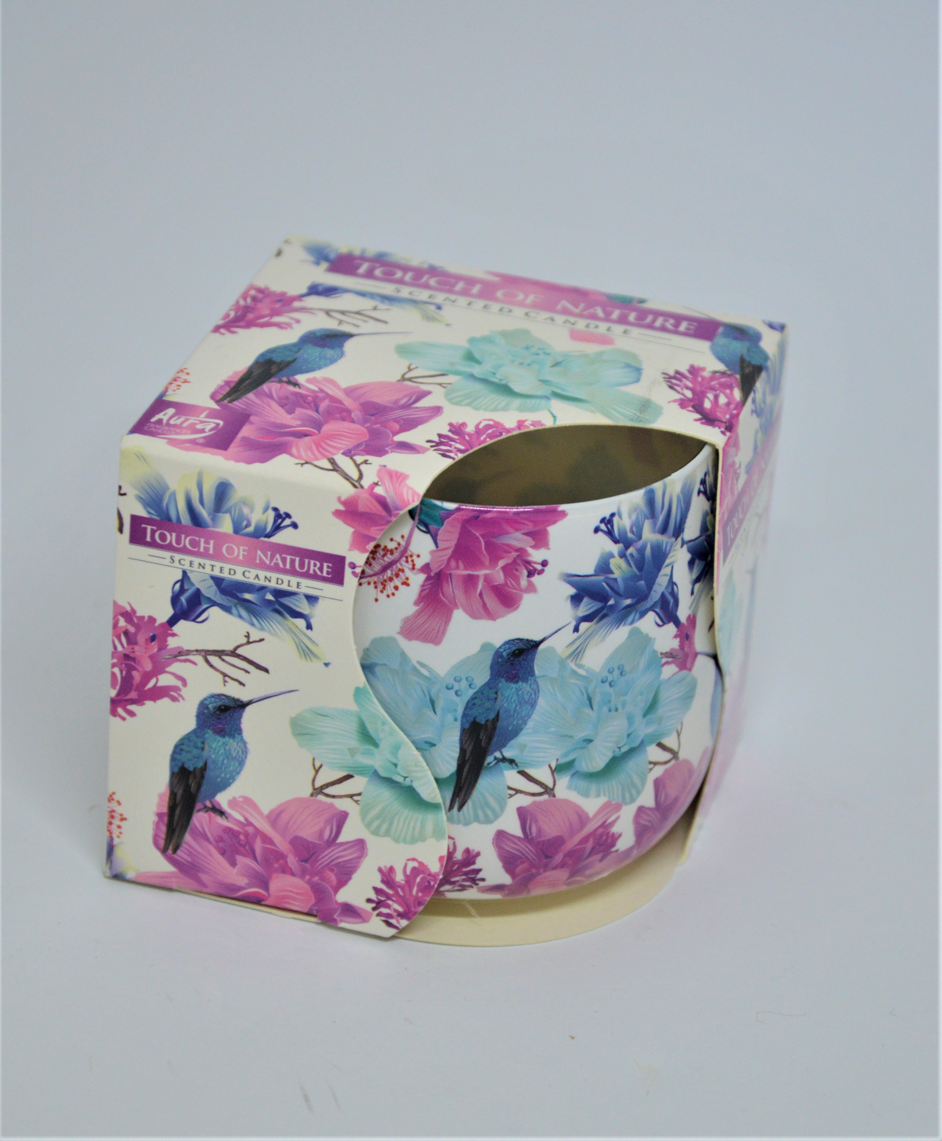 Vonná svíčka ve skle Dotek přírody - vonná svíčka se díky netradičnímu designu stane zajímavou interiérovou dekorací. Vyniká však nejen svým vzhledem, ale i vůní, v níž se mísí květiny s ovocem.