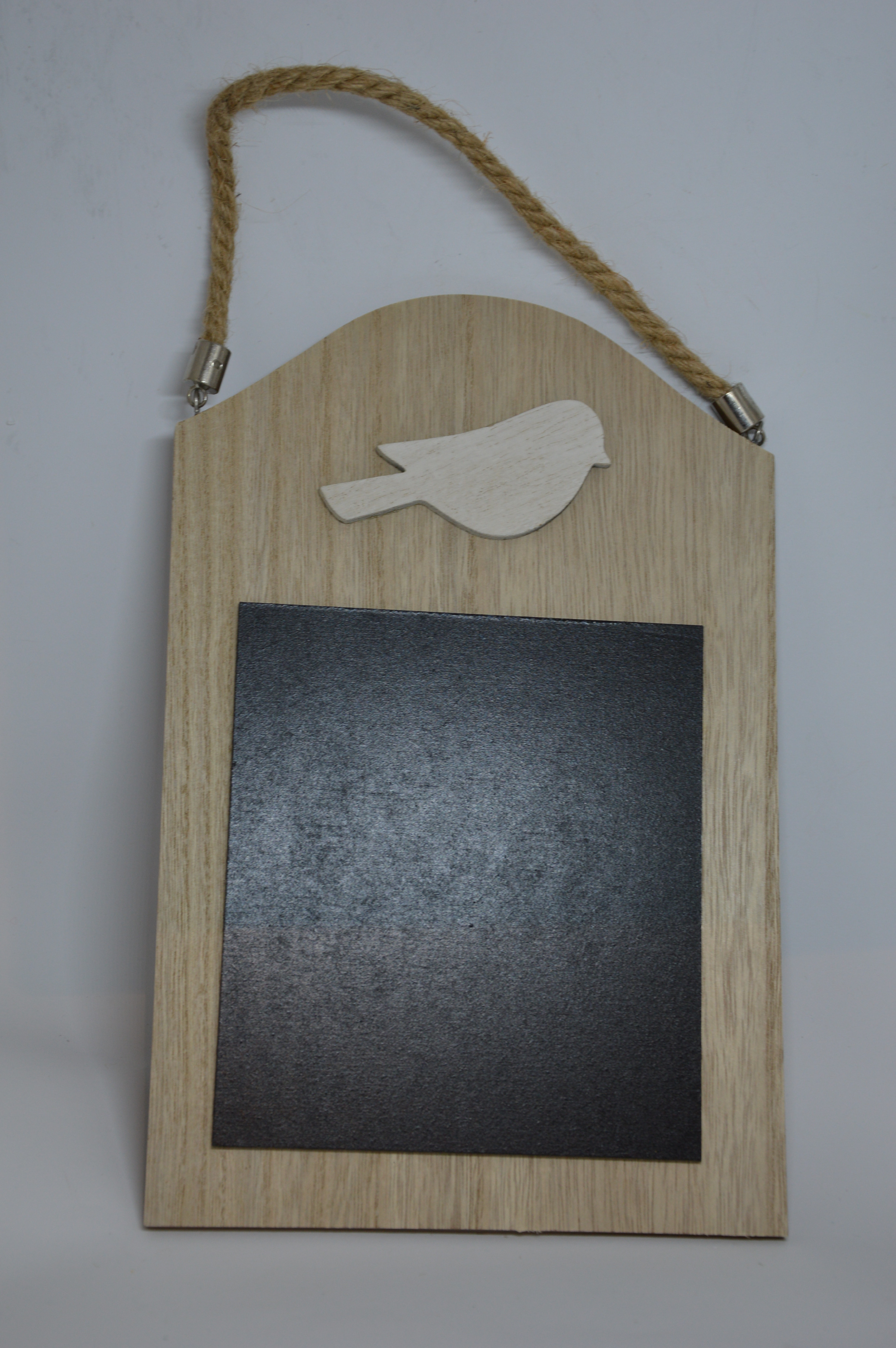 Závěsná tabule – v přírodní a bílé barvě zdobená motivem ptáčka. Krásná dekorace v elegantním jemném zpracování se stane vkusným doplňkem vašeho interiéru. Neplní jen funkci estetickou, ale i praktickou – psát na ni můžete třeba vzkazy.