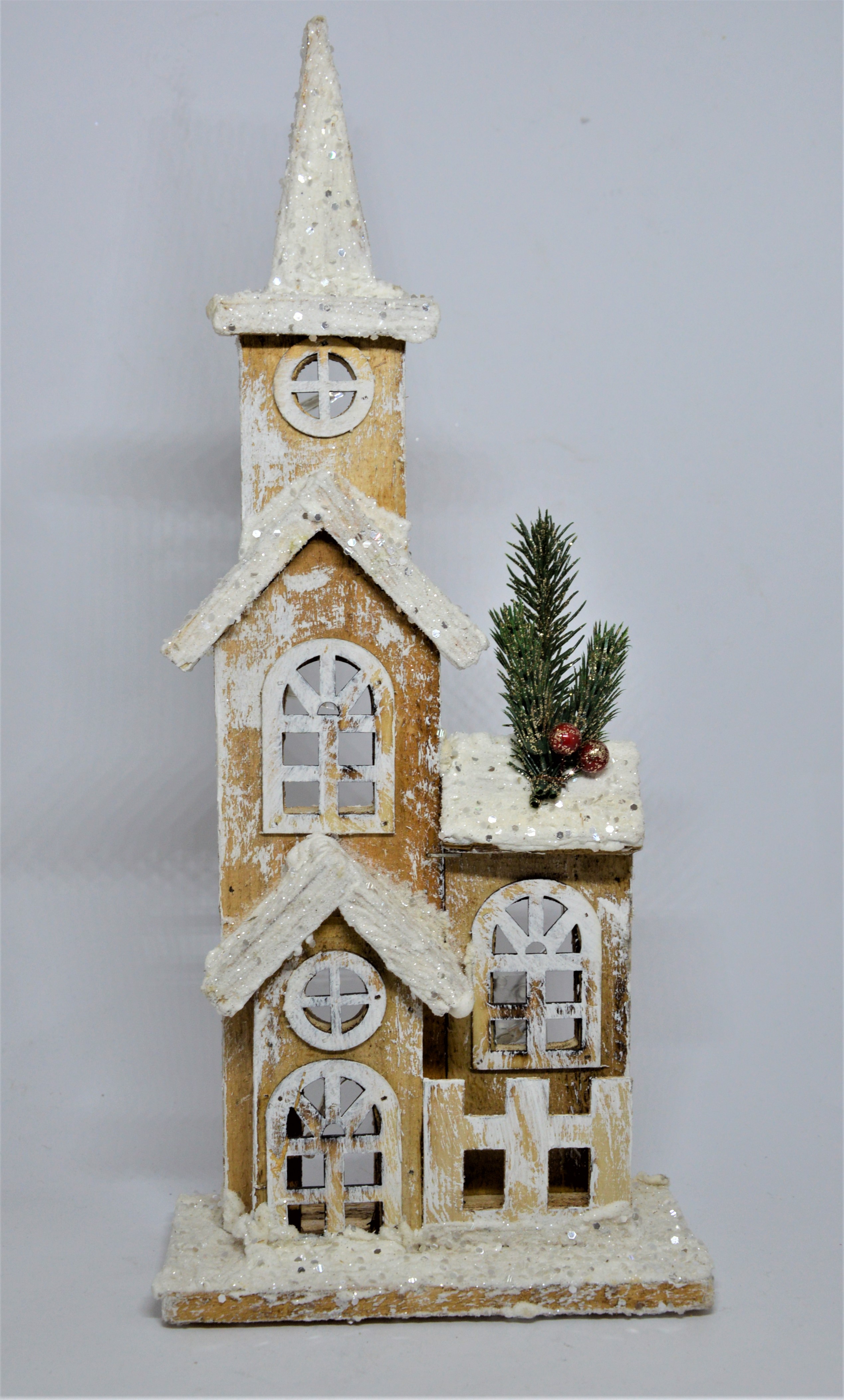 Zimní kostelík 2D s LED světlem - dřevěná vánoční 2D dekorace rozsvítí každou domácnost a vnese do ní vánoční pohodu.